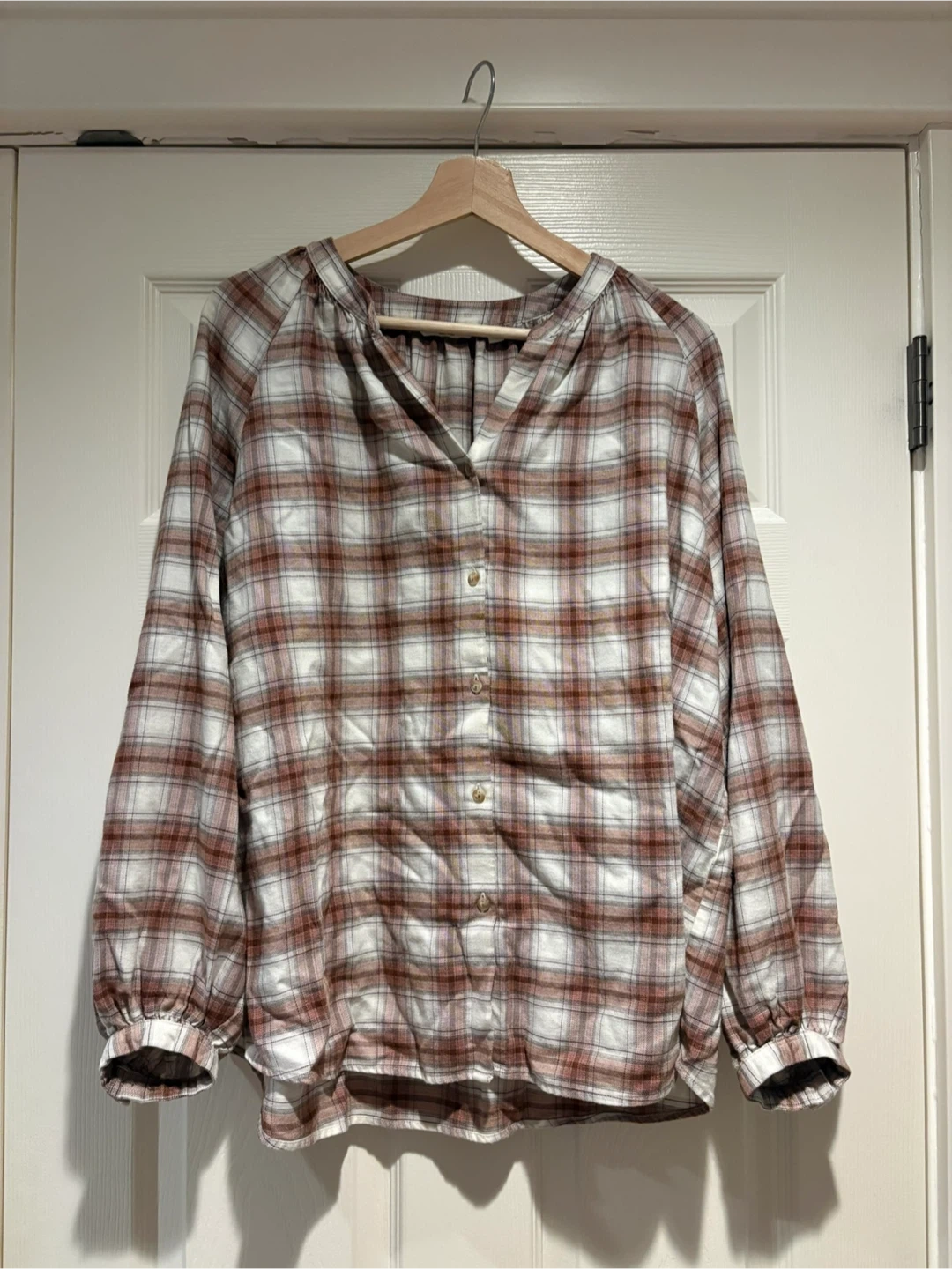 Cozy up in this Uniqlo flannel shirt! It features a classic plaid pattern in neutral tones. This shirt is a size large and is perfect for layering or wearing on its own. It's in great condition and ready for a new home!