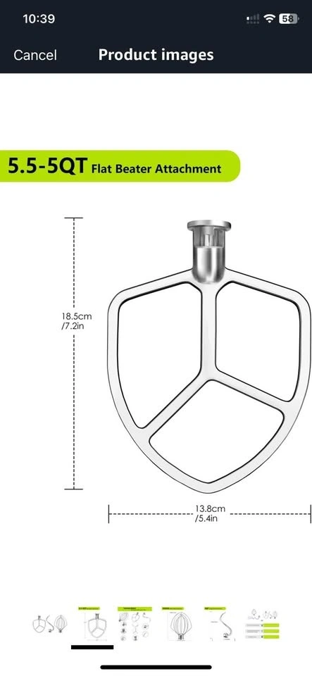 Stainless Steel Stand Mixer Attachments 3-Piece for KitchenAid 5.5-6 Qt Tilt Head Stand Mixer. Includes 6 Wire Whisk, Flat Beater, Dough Hook for KitchenAid 6 Qt Mixer Bowl. Feel free to message if you have any questions!
