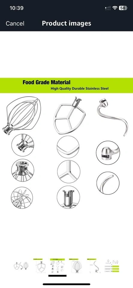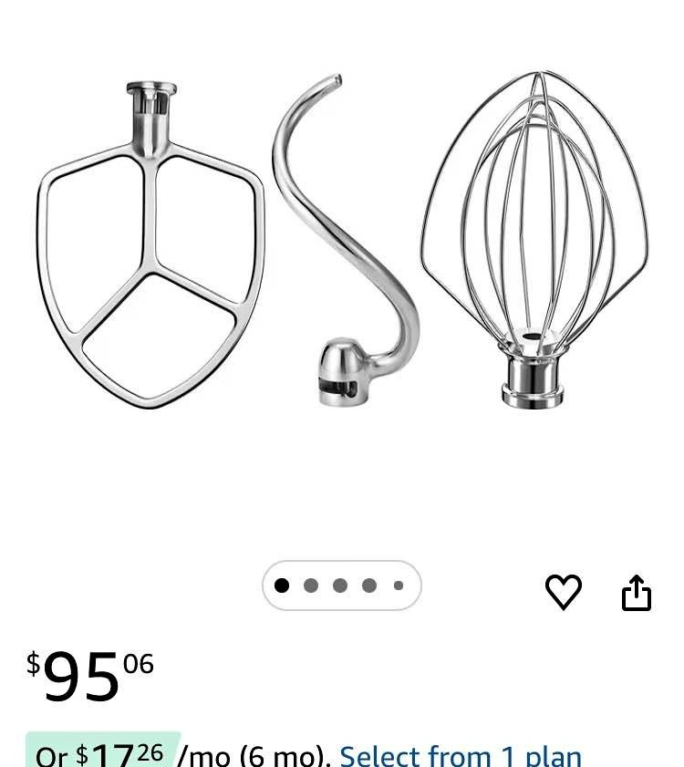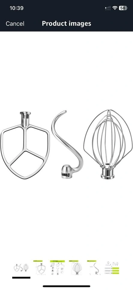 Stainless Steel Stand Mixer Attachments 3-Piece for KitchenAid 5.5-6 Qt Tilt Head Stand Mixer. Includes 6 Wire Whisk, Flat Beater, Dough Hook for KitchenAid 6 Qt Mixer Bowl. Feel free to message if you have any questions!