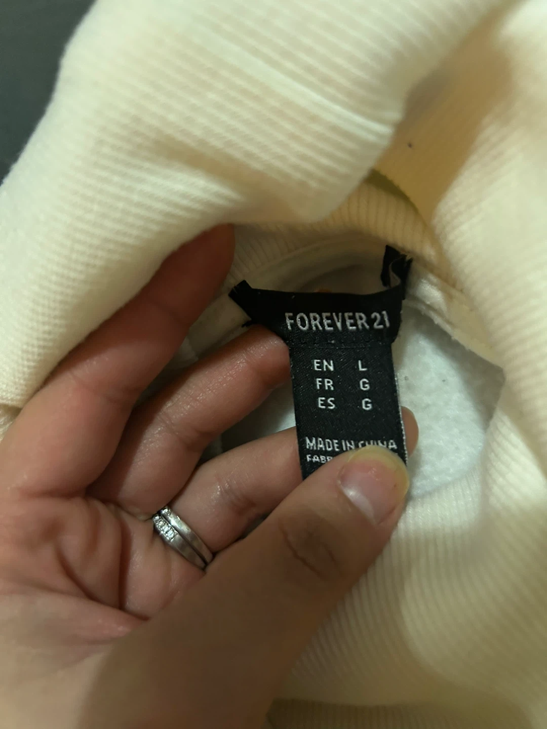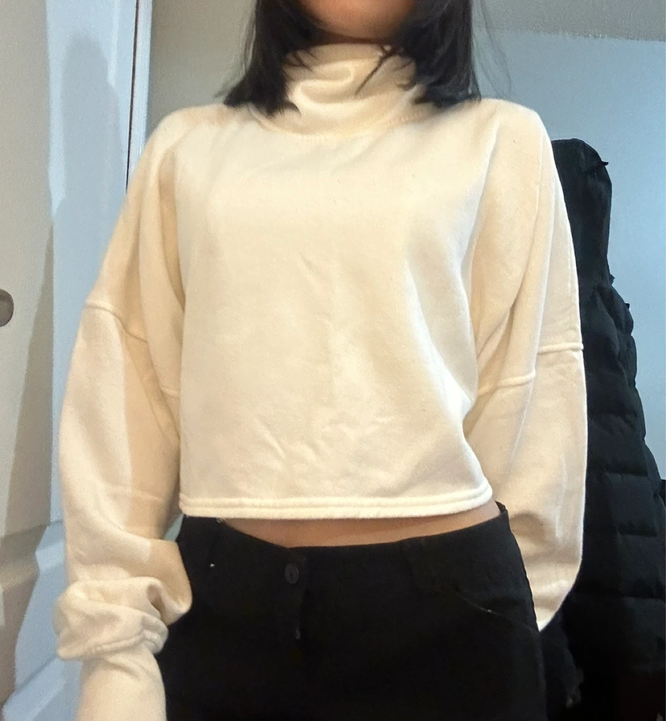 Cozy cream-coloured turtleneck sweater from Forever 21 in a size large! Perfect for layering or wearing on its own. It's in great condition and ready for a new home!