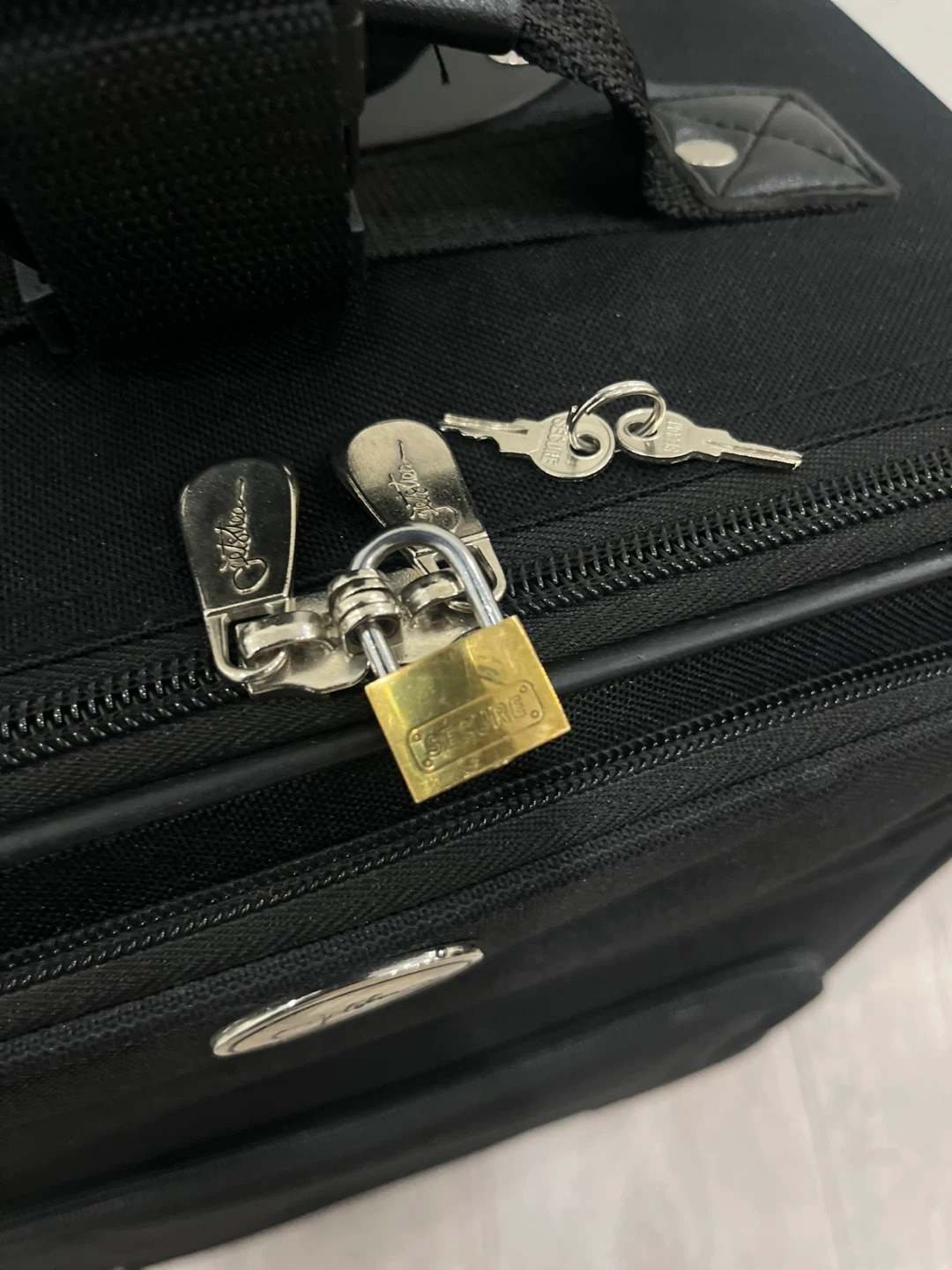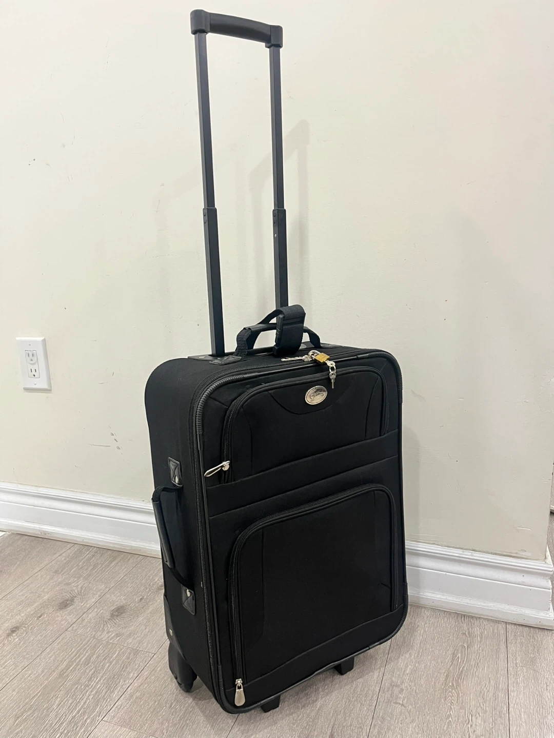 Looking to sell this carry-on luggage in black. It's in great shape and ready for your next trip! Perfect for weekend getaways or as a convenient travel companion. Comes with a lock and keys for added security