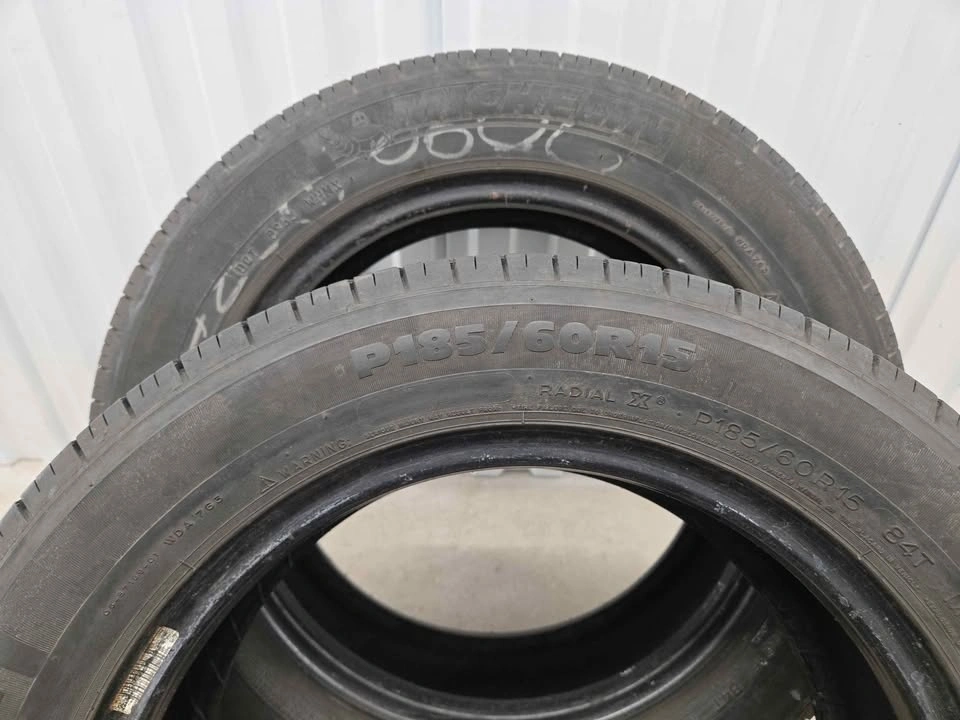 Four Michelin all season tires, size 185/60R15, with good tread remaining for multiple seasons of use. A good option if you need a set of four tires at an affordable price. $150 for the set.