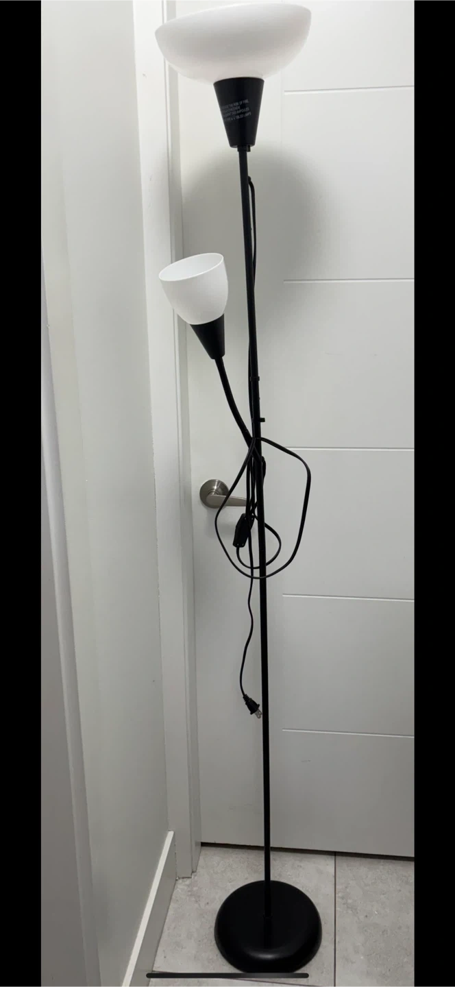 Selling an IKEA floor lamp with an adjustable reading light. It's black with white shades. Great for adding some extra light to any room!