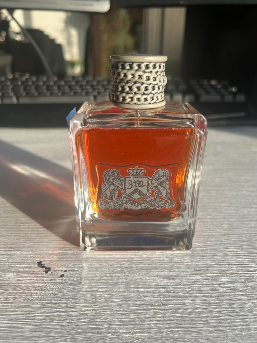 Selling a bottle of Juicy Couture perfume! It's in great condition and ready for a new home. The bottle is a classic design with the iconic Juicy Couture logo.