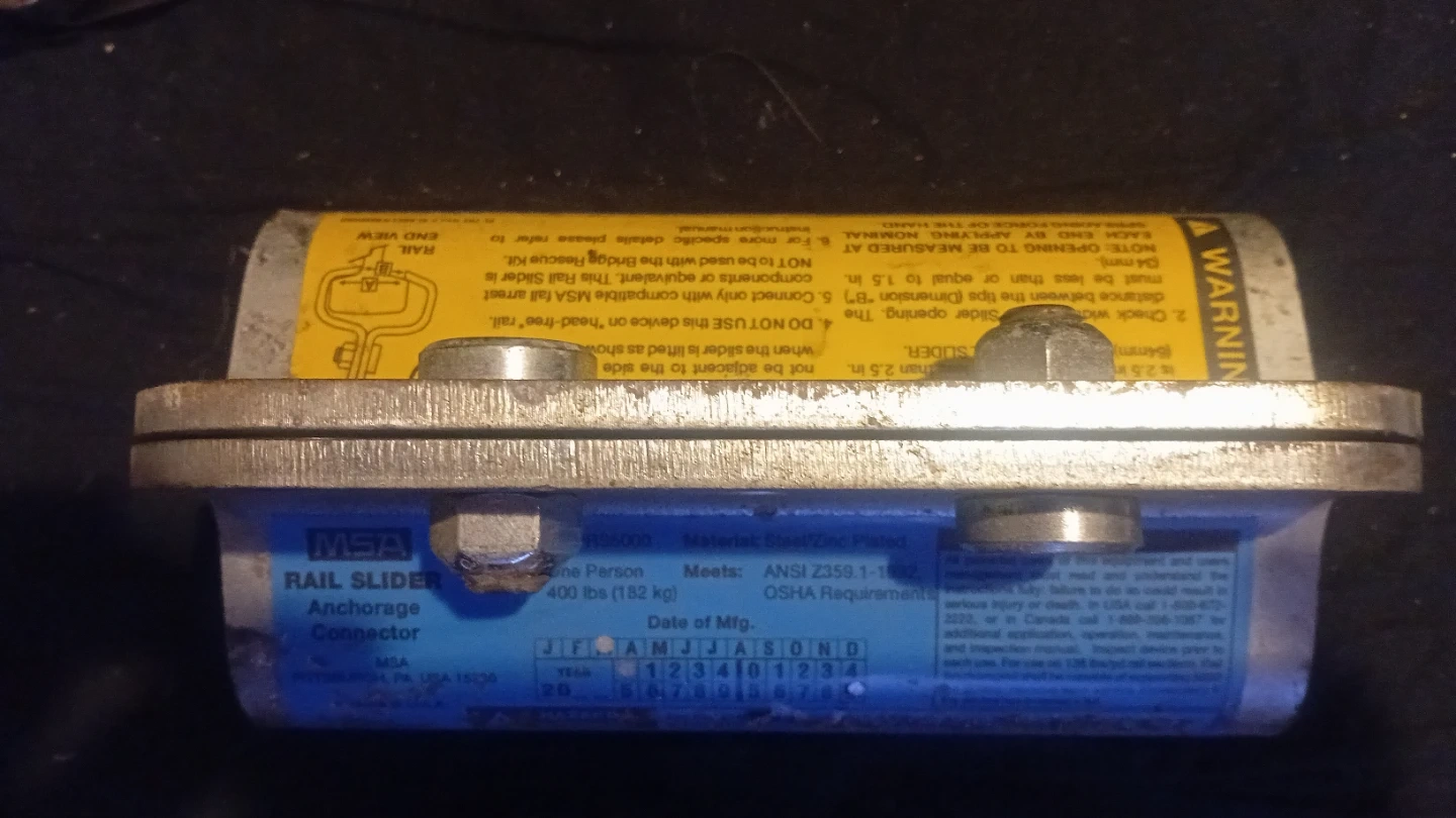 Was selling an MSA Rail Slider Anchorage Connector. It meets ANSI Z359.1-1992 and OSHA requirements for one person up to 400 lbs (182 kg). Rope Grab is CLAS AD/E4. But now if someone can use it, I'd take some kind of trade. If you know, you know, exactly how much these pieces cost individually. My asking price is a steal of a deal. I wouldn't mind simply trading for anything reasonable and in good condition. Cordless Grinder, sawzall, hackzall with battery and charger. Either or.
