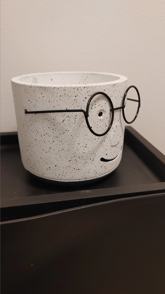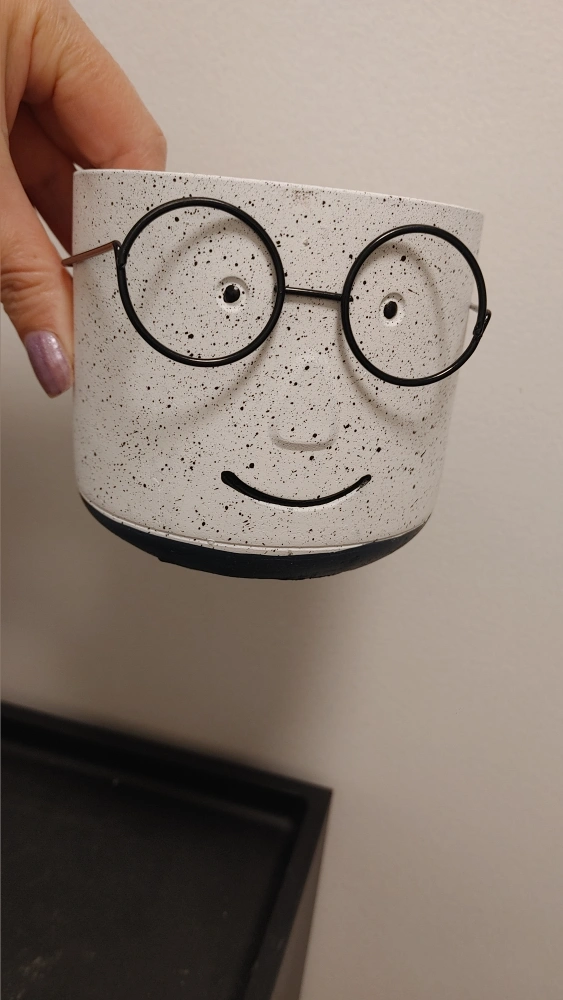 Cute speckled planter with a face and glasses detail. It's new and ready for a new home for your plants!