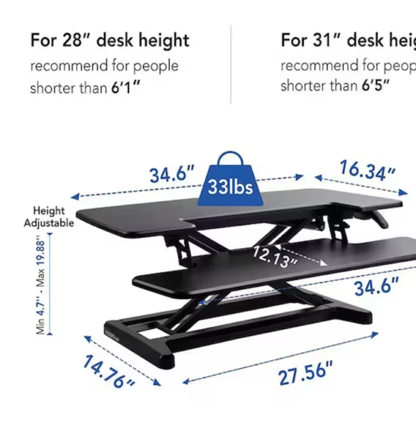 - Supports up to 33lbs