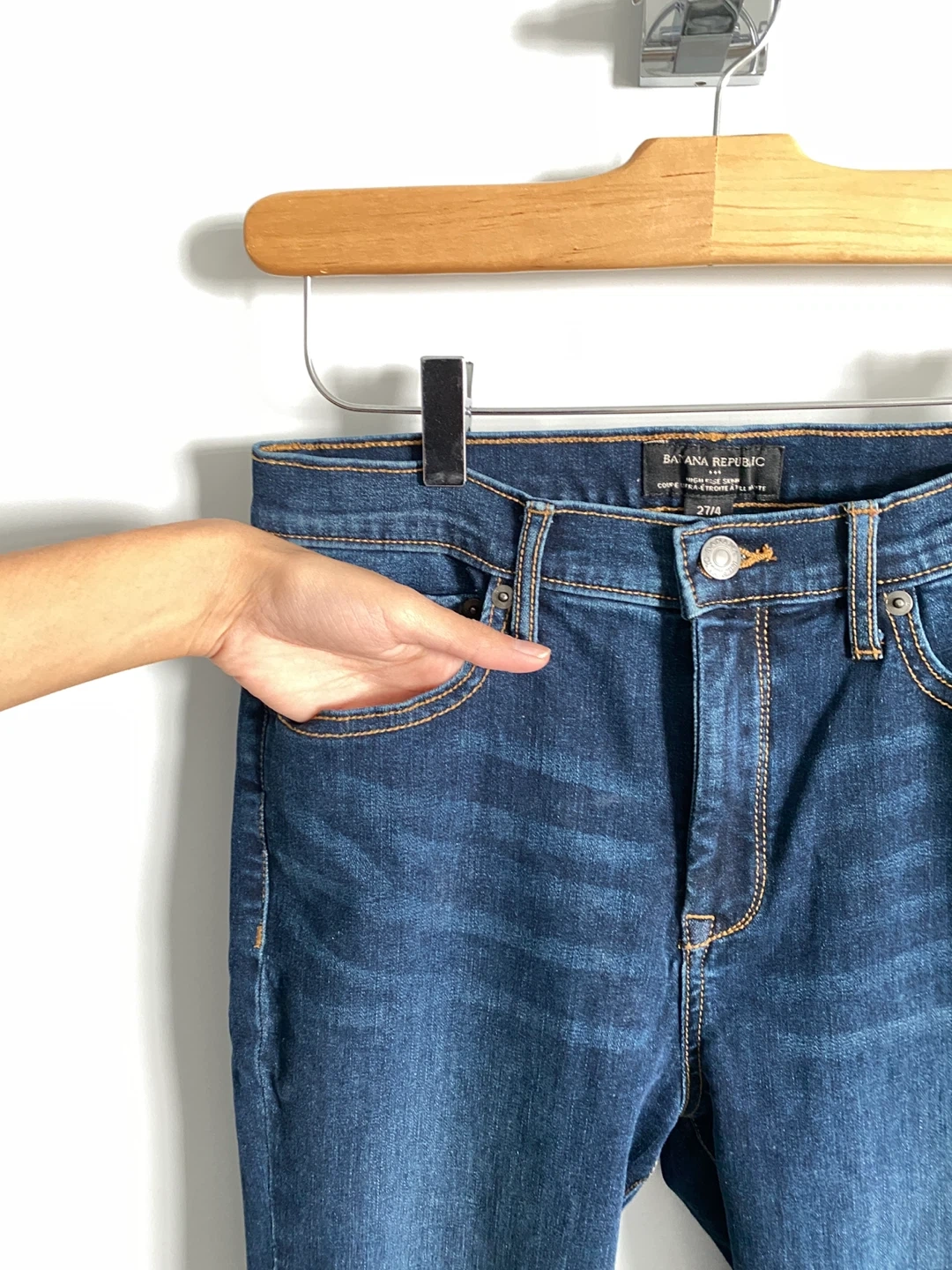 Selling a pair of Banana Republic High Rise Skinny jeans in size 27/4. Made up of 82% Cotton making it an great choice! The jeans are a classic dark wash, perfect for dressing up or down. Has 4 functional pockets. They are in excellent condition, worn twice only and ready for a new home!