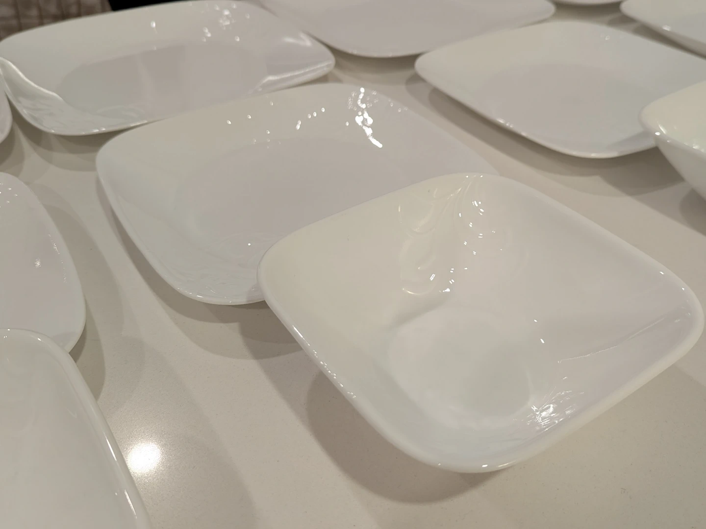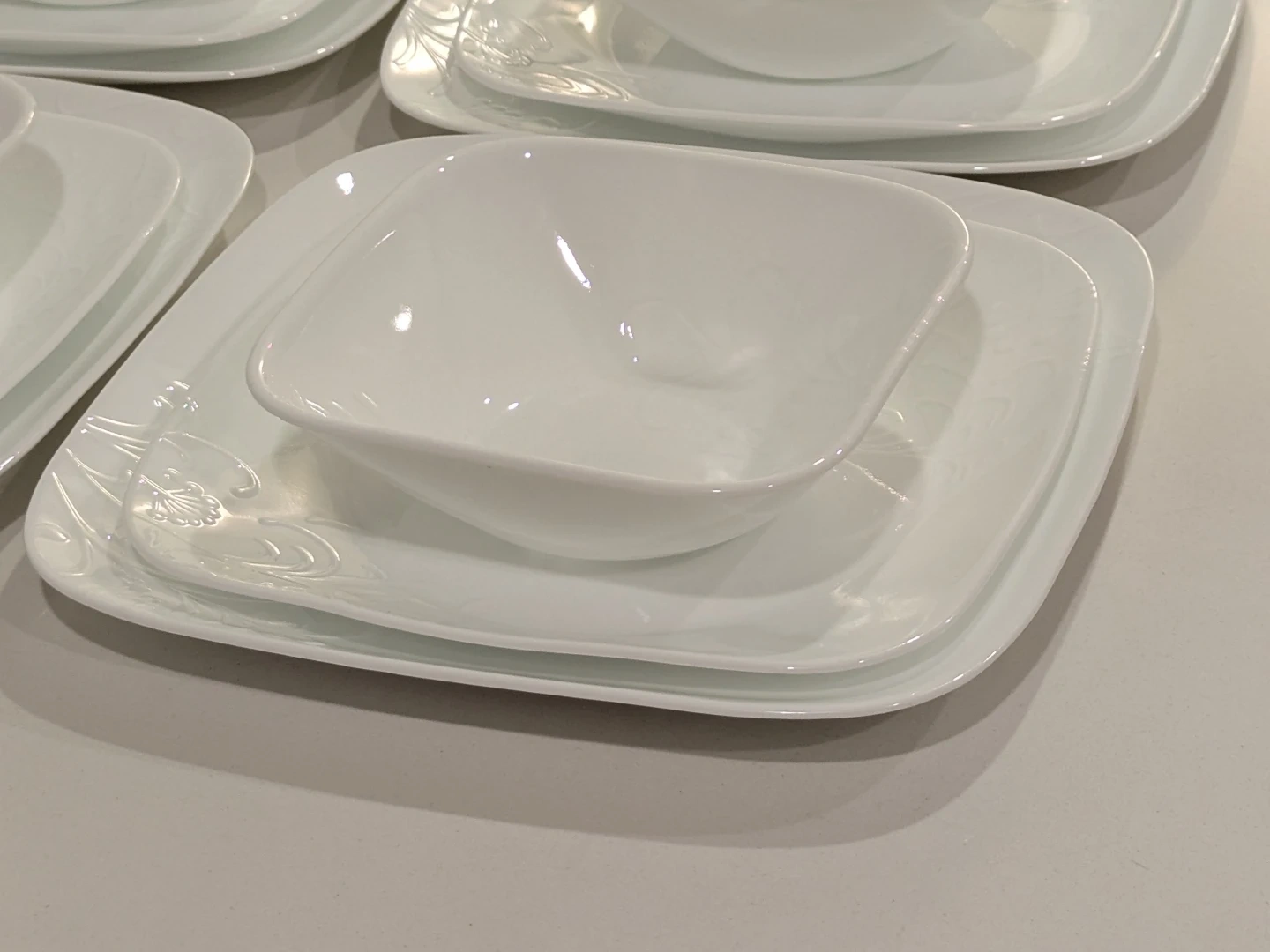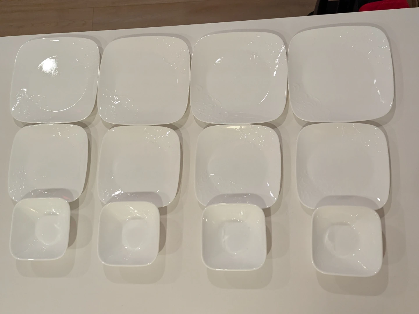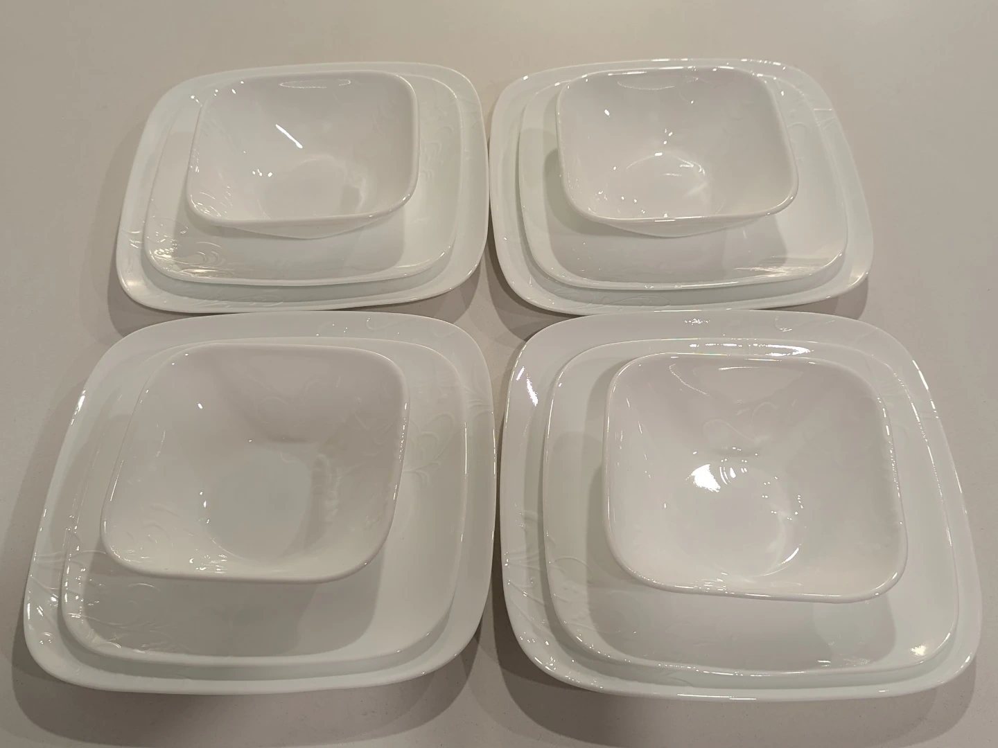 Corelle Square Set: 4 dinner plates, 4 salad plates, 4 bowls