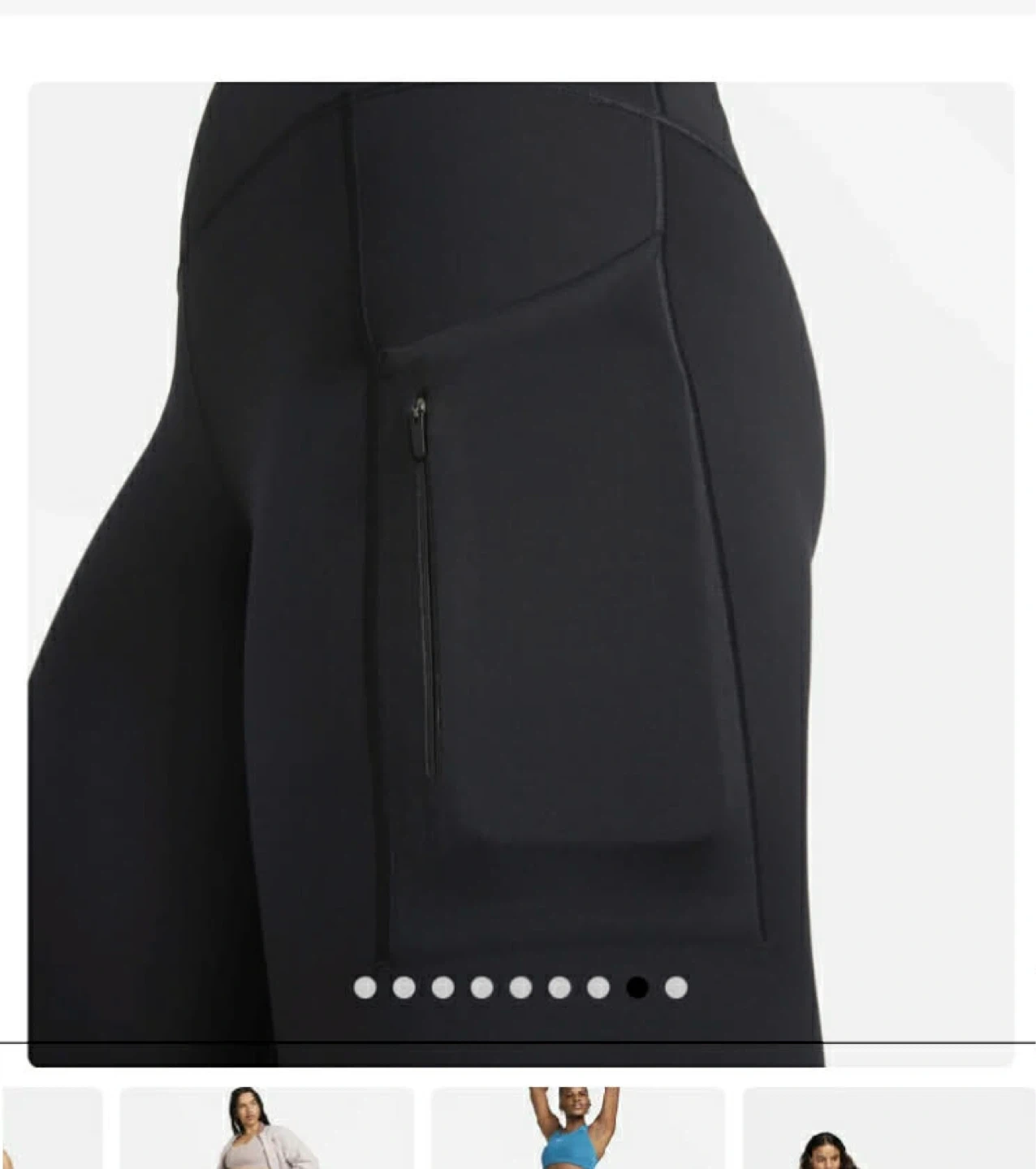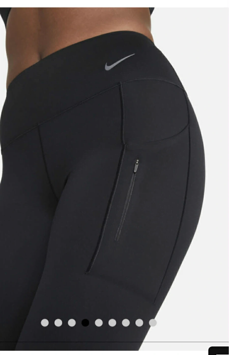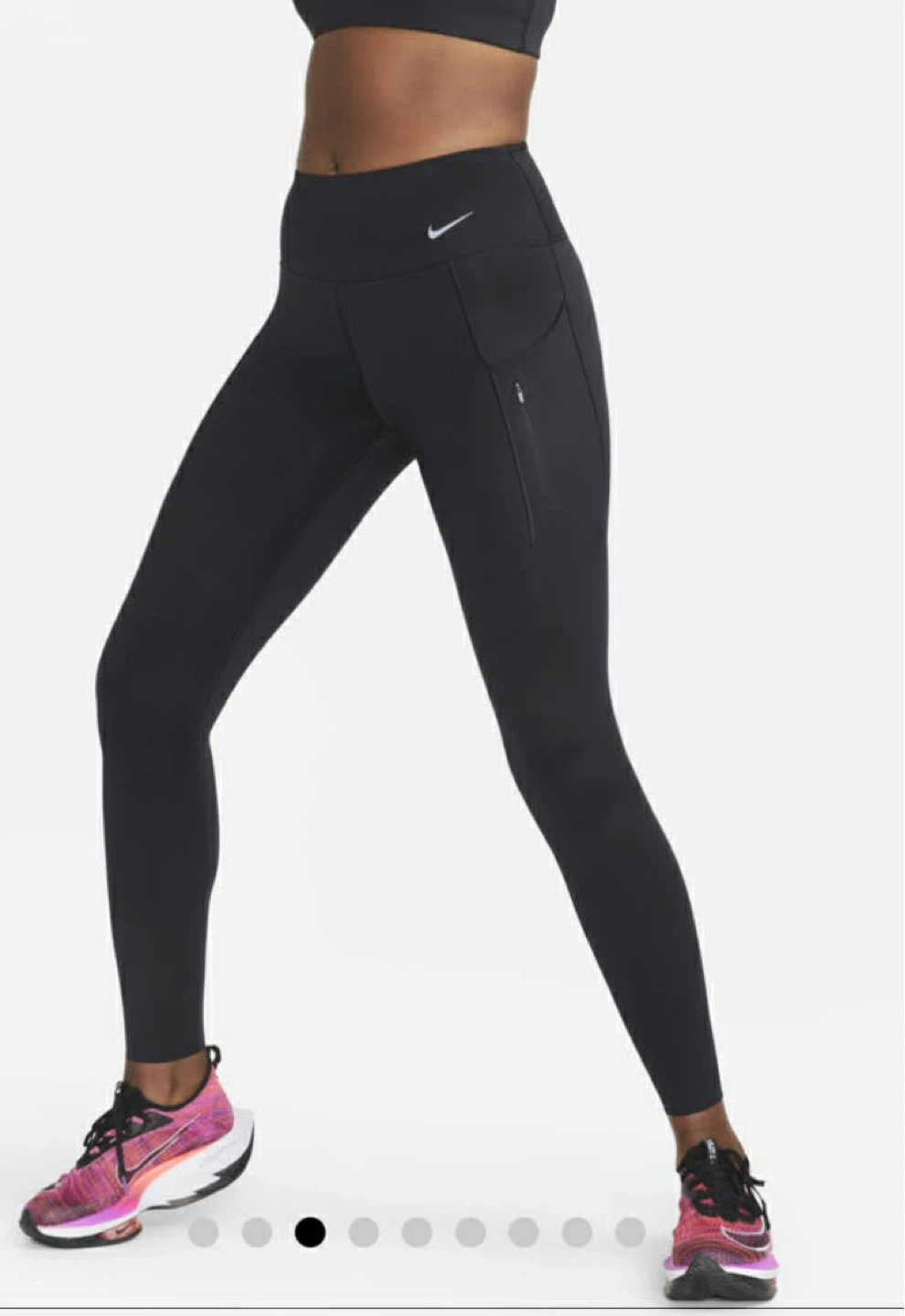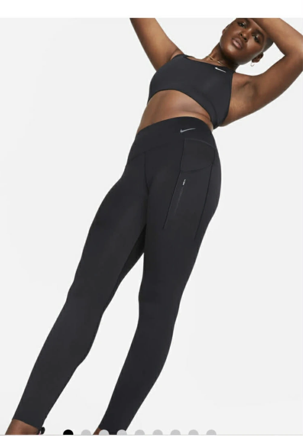 Selling a pair of black Nike running leggings. They feature a small Nike logo and a zippered pocket on the side. Great for running or working out!