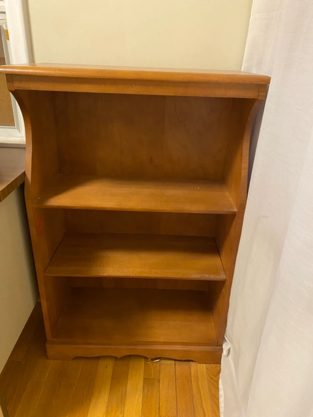 Selling a wooden bookcase. It's in great shape and ready for a new home. Perfect for storing books, displaying decor, or organizing your space. Solid construction for lasting use