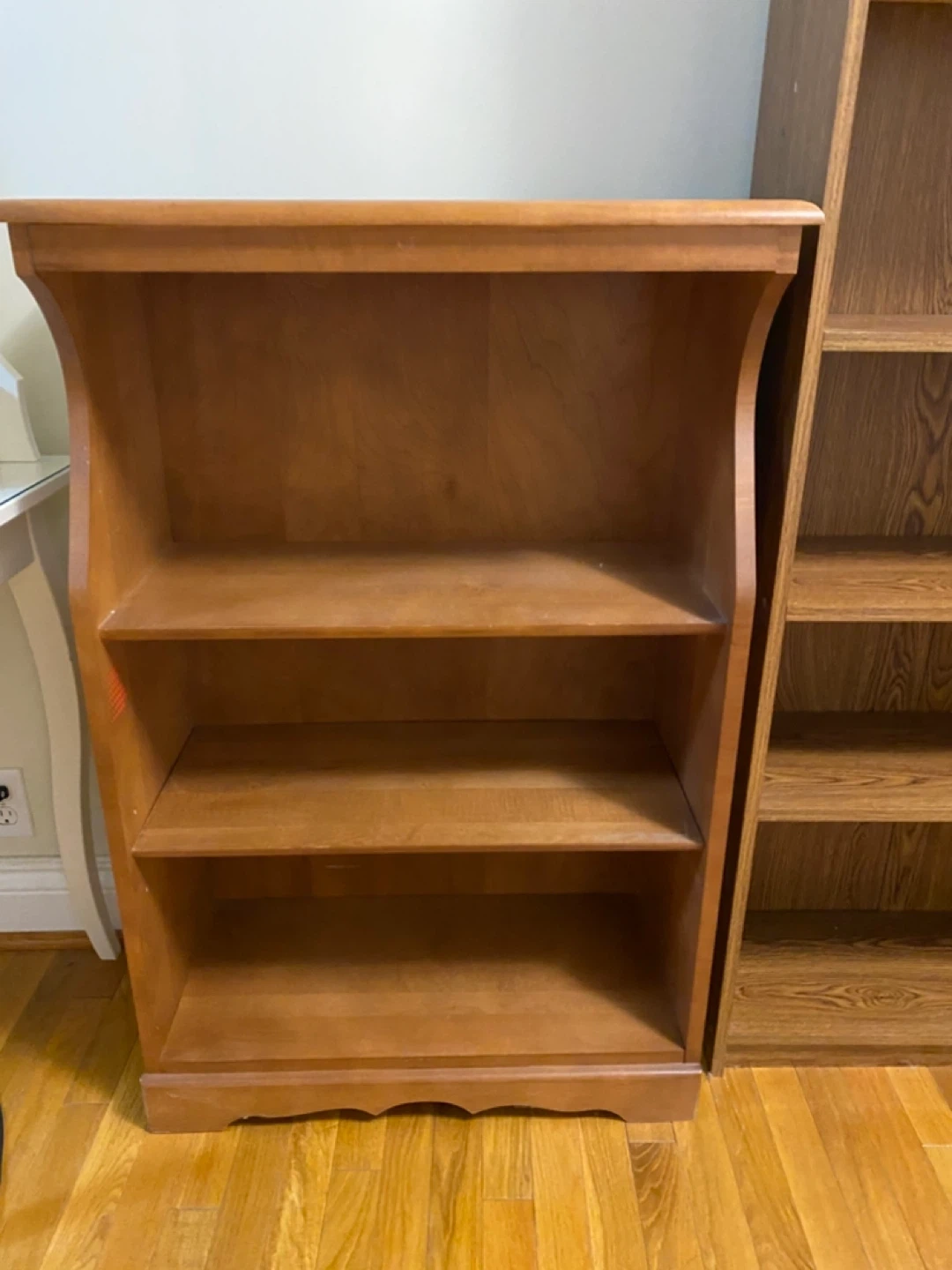 Selling a wooden bookcase. It's in great shape and ready for a new home. Perfect for storing books, displaying decor, or organizing your space. Solid construction for lasting use