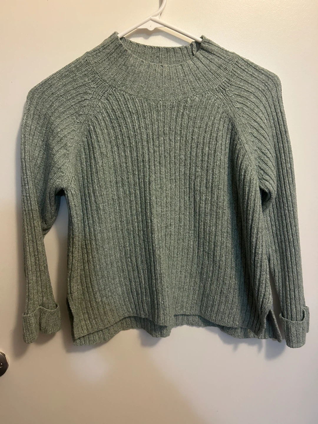 Cozy Old Navy ribbed sweater in size M(8)! It's a lovely sage green colour and in great condition. Perfect for layering or wearing on its own