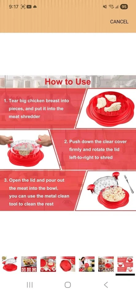 Brand new chicken shredder tool. Large size, great for chicken breasts, pork, and beef. Comes with a brush and fork. Features a visible shredder, anti-slip strip, and ergonomic handle. BPA free. From a pet-free and smoke-free home. Let me know if you're interested!