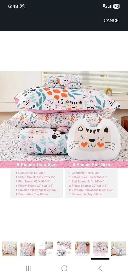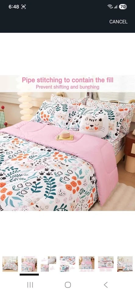 Brand new Mooreeke Twin Size Comforter Set for girls. Features a flower and cat design. Includes comforter, shams, and a decorative toy pillow. Made of ultra-soft microfiber. From a pet-free and smoke-free home. Feel free to message if you have any questions!