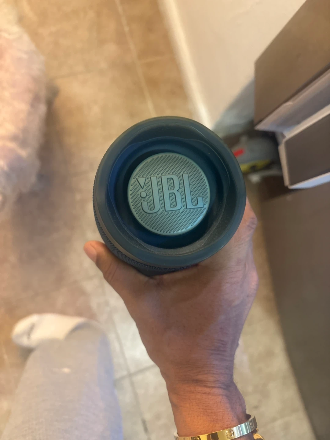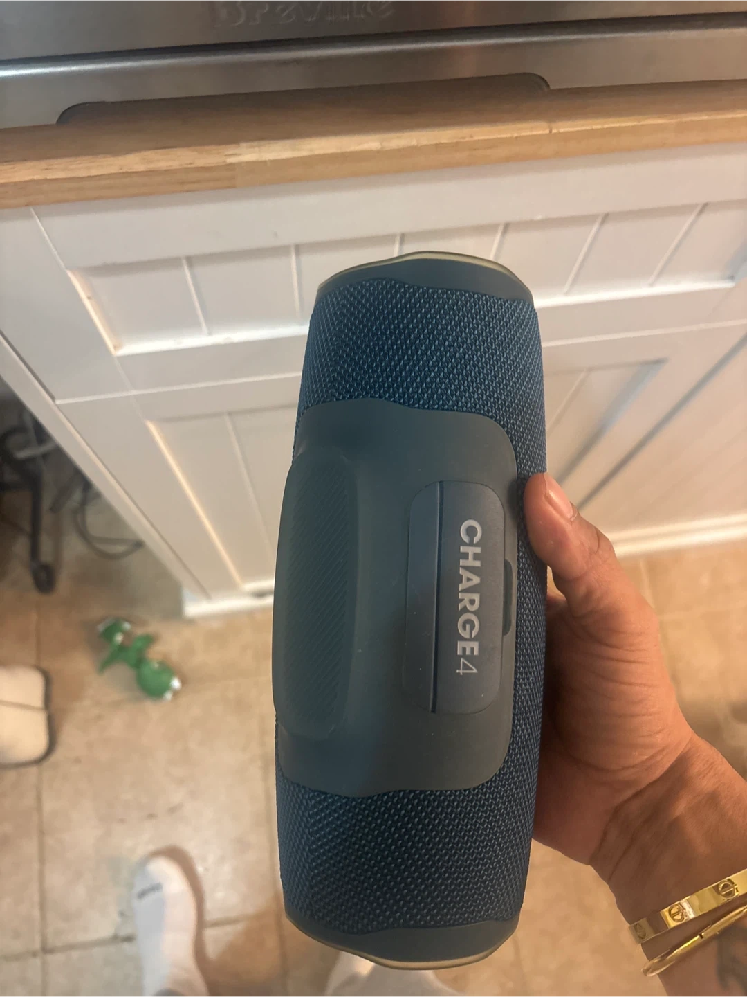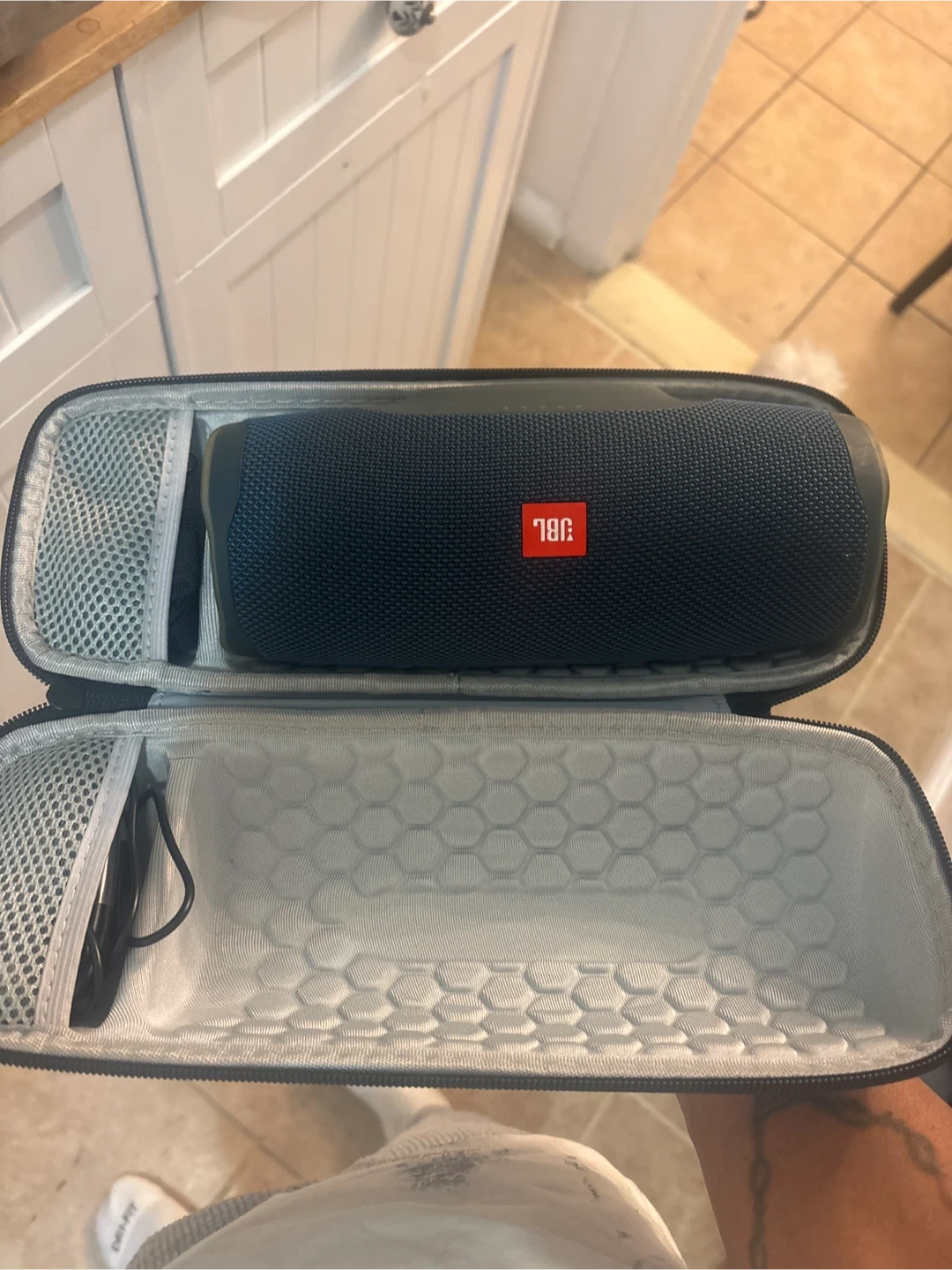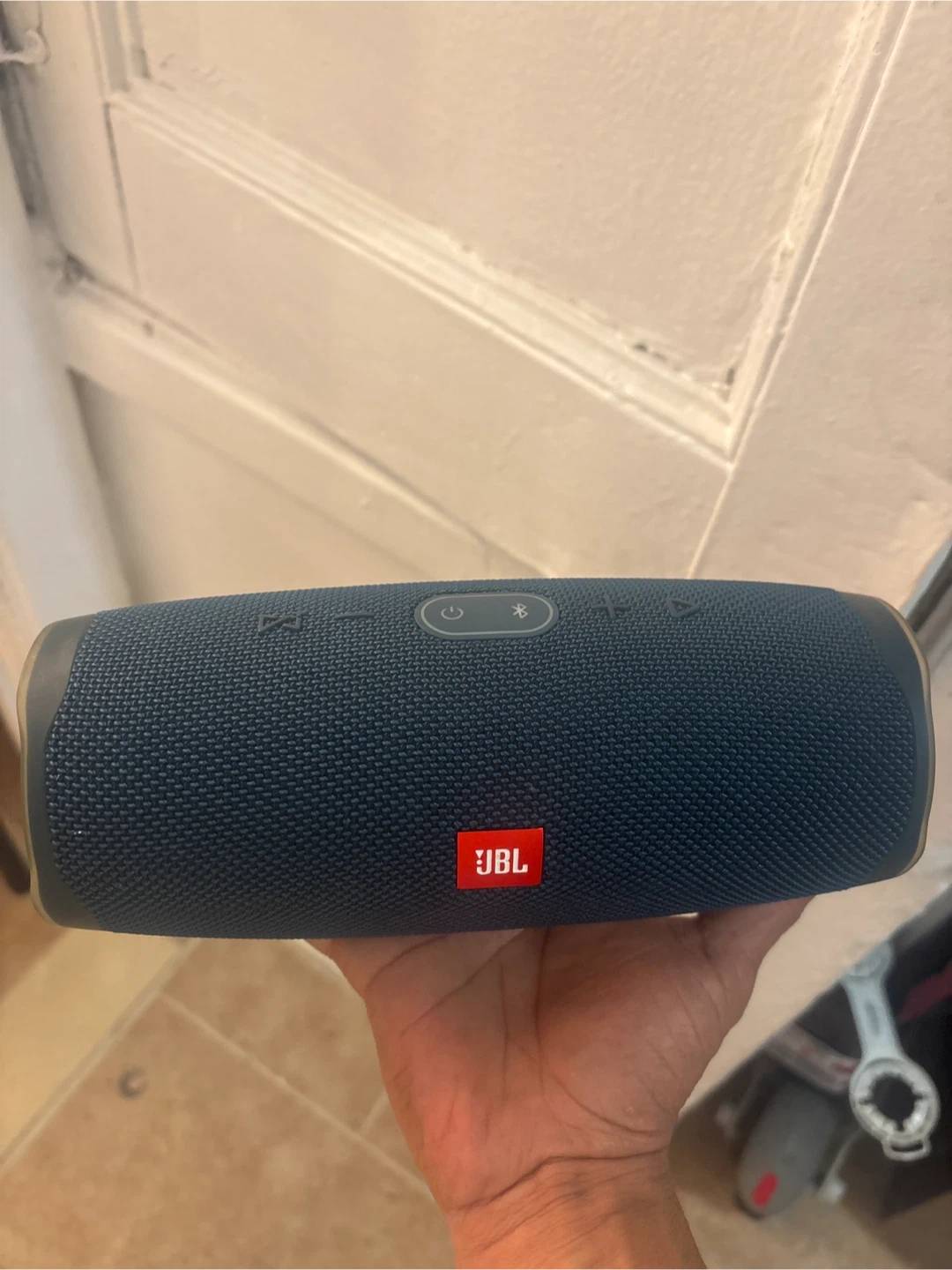 Selling a blue JBL Charge 4 Bluetooth speaker! It's in great condition and comes with a case. This speaker is perfect for on-the-go listening, whether you're at the beach, park, or just moving around the house