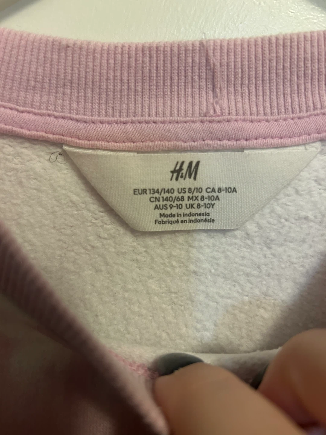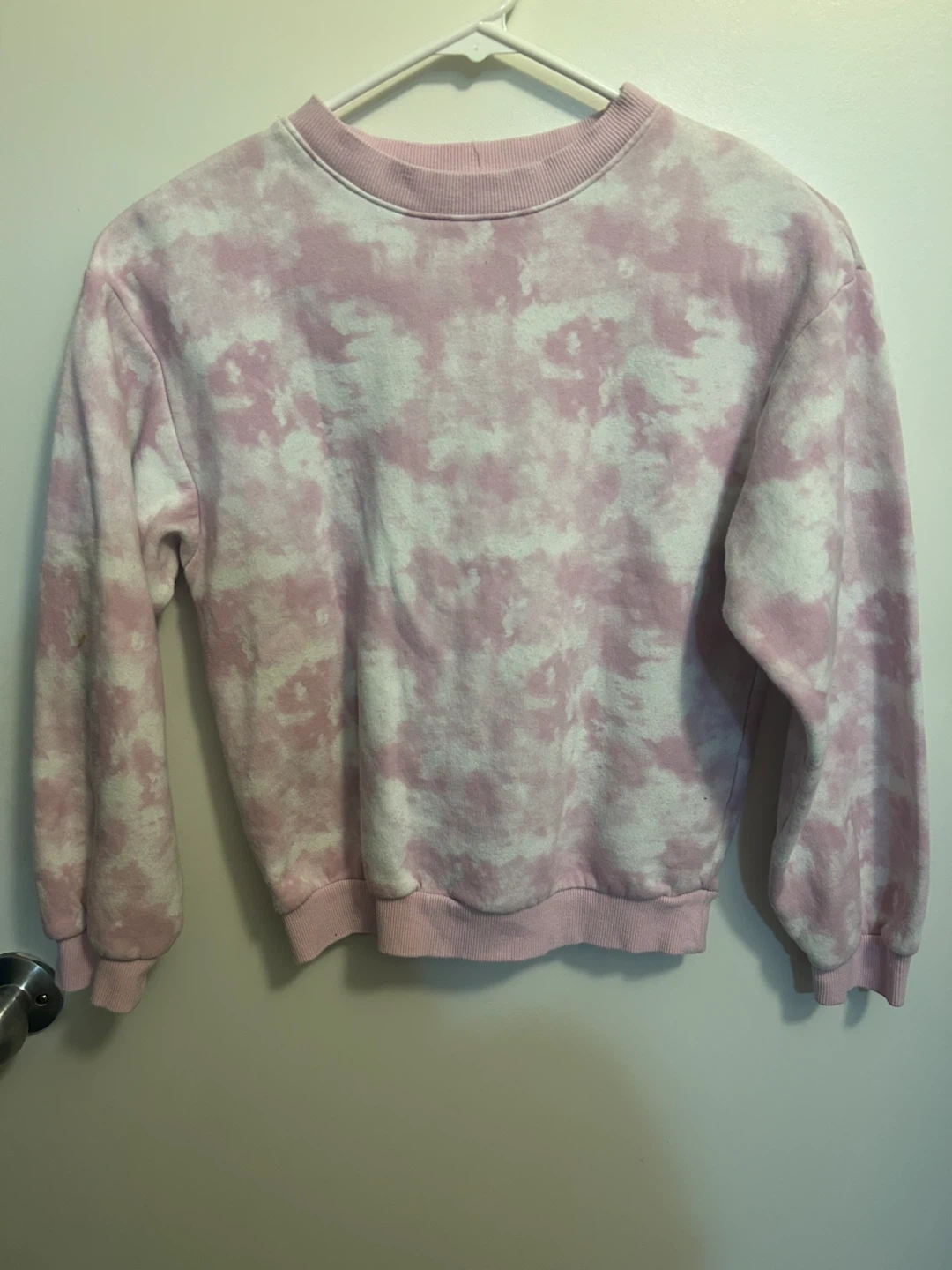 Selling a cute H&M sweatshirt for girls! It's a size 8-10 and features a fun tie-dye pattern in pink and white. Perfect for keeping cozy and stylish!