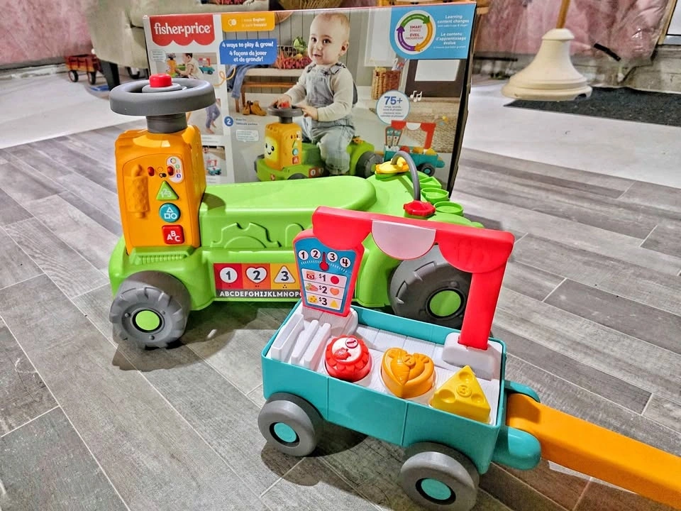 This Fisher-Price Laugh & Learn 4-in-1 Farm to Market Tractor is a fun and educational toy for little ones. It offers four ways to play as your child grows, encouraging imaginative play and learning about farming and markets. Let me know if you're interested!