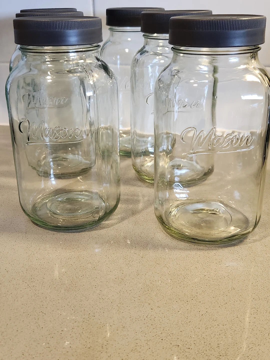 I'm selling a set of (6) regular mouth, 1L Mason jars!