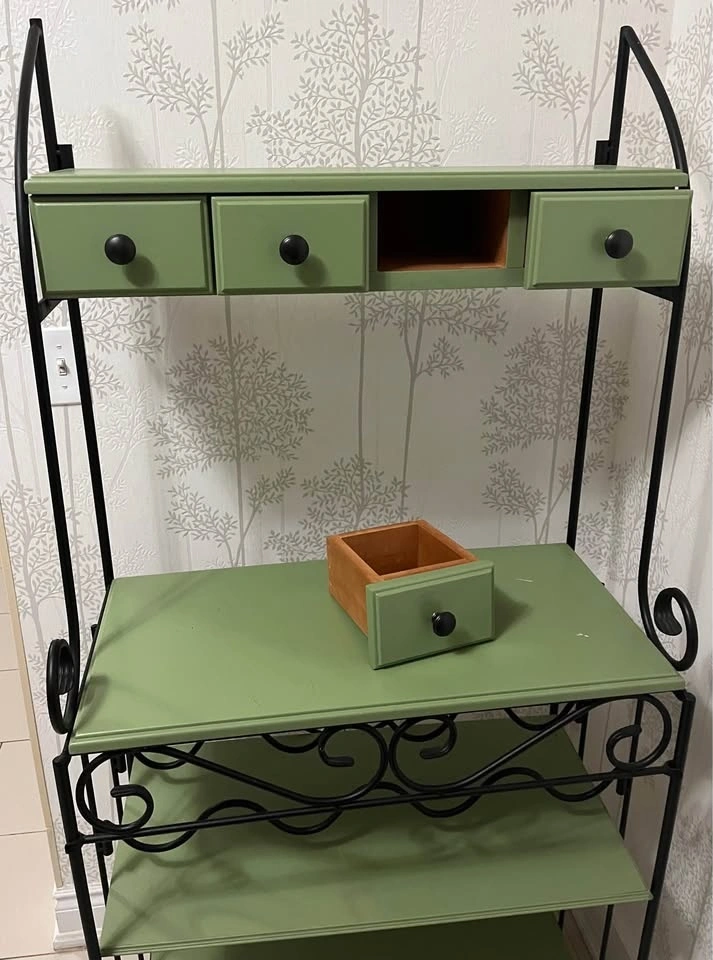 Very sturdy bakers rack, excellent for wine bottle storage. Includes 3 solid shelves and 4 small drawers. Dimensions: 28” long x 14” wide x 61” high. Pick up in Schomberg (Hwy 27 south of Hwy 9).