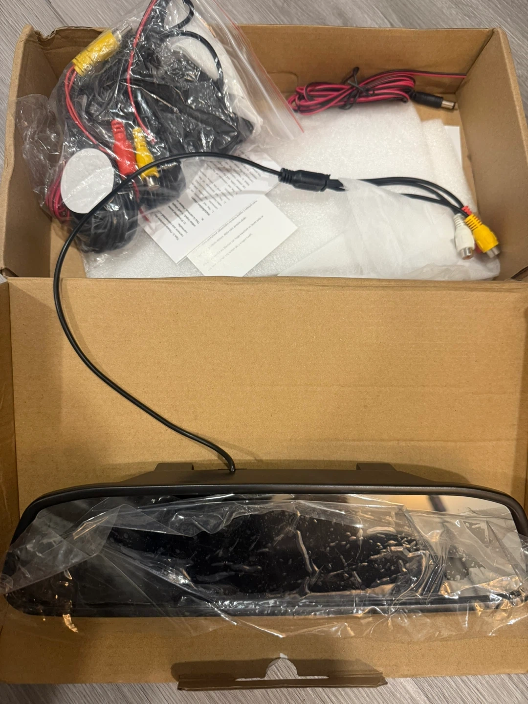 Selling a brand new car rear view mirror monitor. It comes with all the components and accessories in the original box! Perfect for upgrading your car's safety and convenience