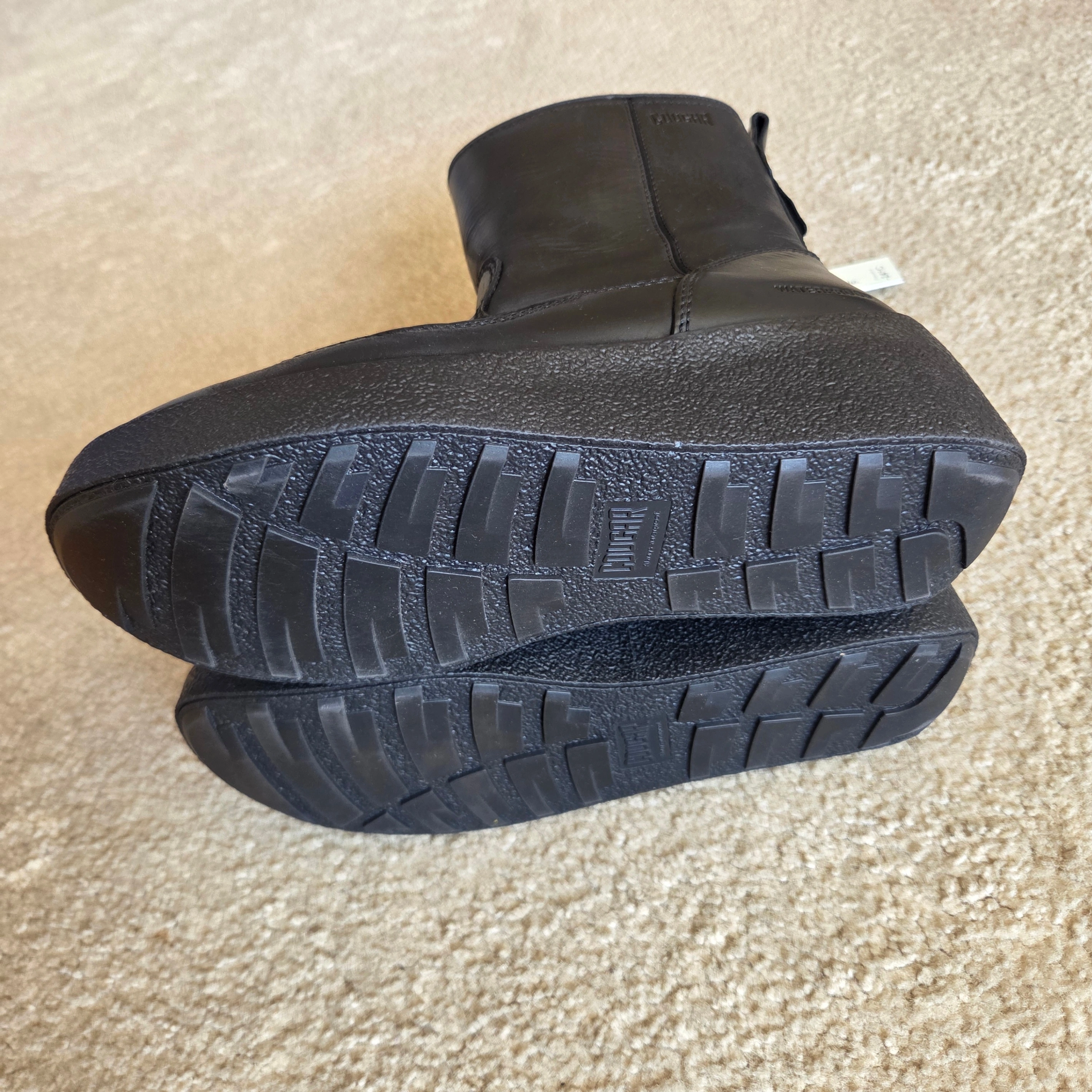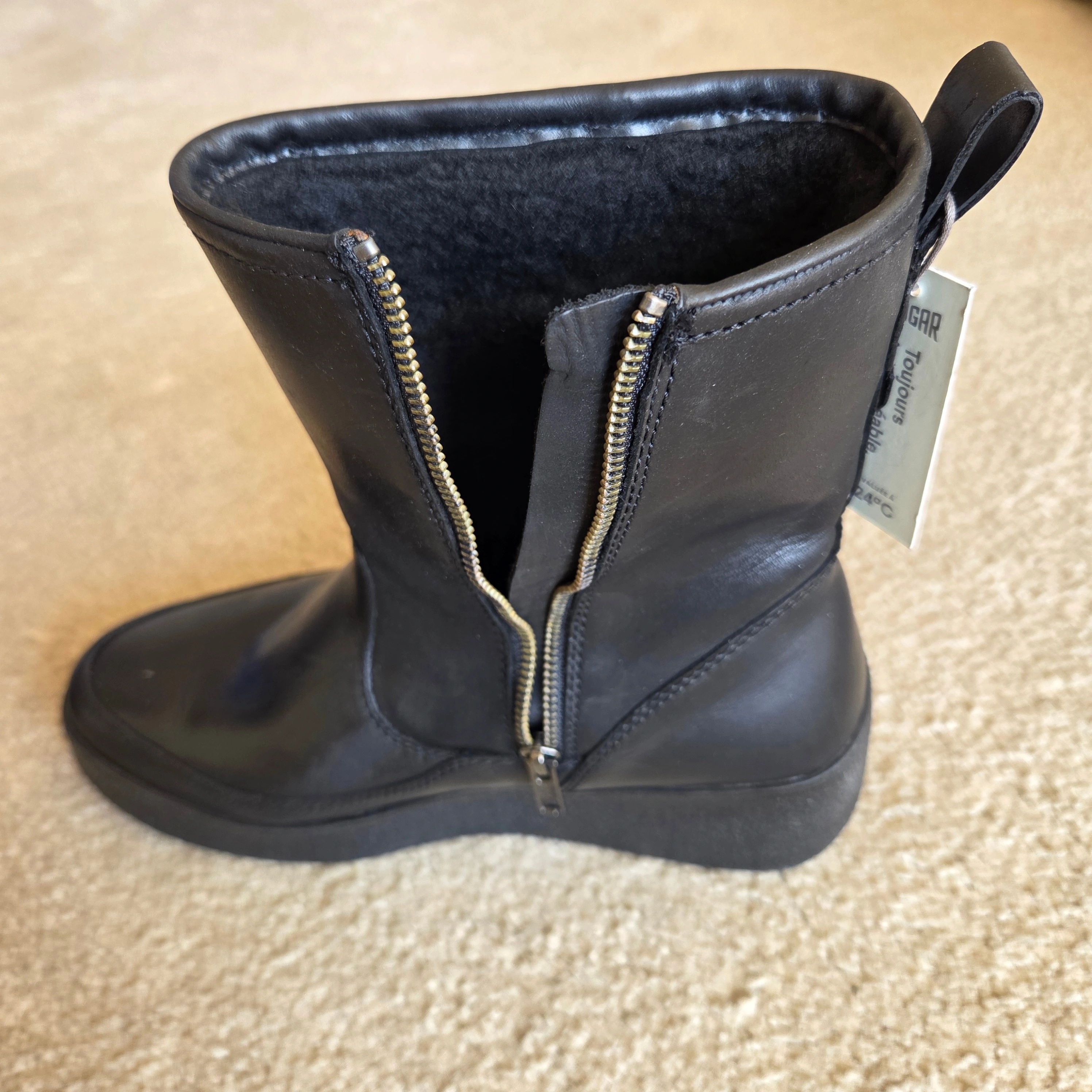 You are interested in a pair of Cougar DEVLIN-L Waterproof Boots Women’s 10 (US) Wedge, Side Zip (New with Tags). They are mid-height leather boots with an inside zipper, rounded toe, tonal stitching, and a back loop. The sole is a low wedge 2.5-inch thermo-rubber outsole. They are perfect for deep winter weather and ready to wear. From a smoke-free and pet-free home.