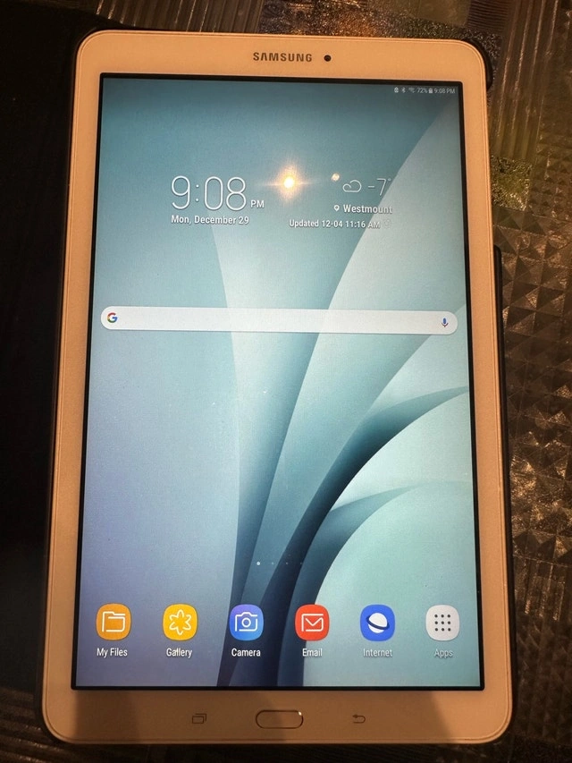 I'm selling my Samsung Galaxy Tab E, a versatile tablet with a 9.6-inch display, 1.5GB of RAM, and 16GB of internal storage, running on Android. This tablet has served us well and is in great condition, perfect for browsing, media consumption, and light productivity tasks. Comes with a case to protect the device. Key Features: Display: 9.6-inch, RAM: 1.5GB, Storage: 16GB, Operating System: Android. From a pet and smoke-free home.