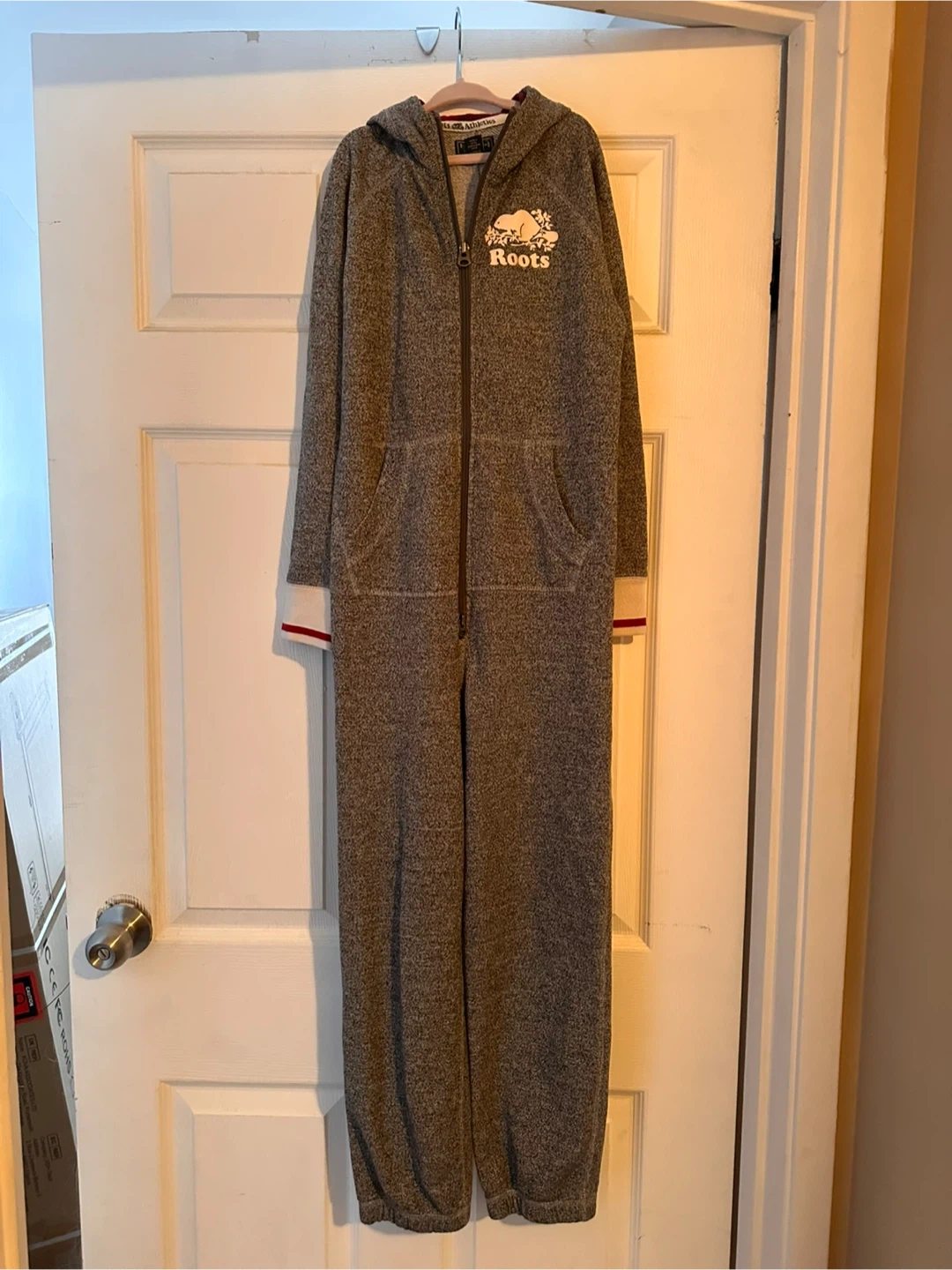 Cozy Roots Kids onesie in size M (7-8 years). It's in great condition and perfect for keeping your little one warm and comfy! Features a full zip and a hood. The material is soft and durable, ideal for lounging around the house or wearing outside