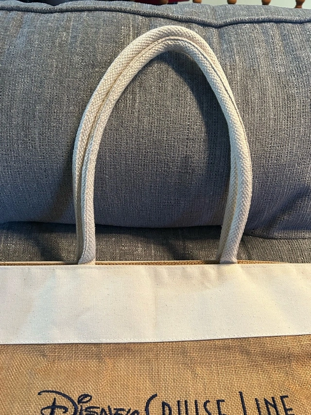 Pre-owned Disney Cruise Line Castaway Club beach bag, perfect for your next vacation or trip to the beach. The bag is in great condition. Spacious interior, sturdy rope handles, and features the Disney Cruise Line logo. Ideal for carrying towels, sunscreen, and other essentials. This charming bag is ready for new adventures! Priced at $40 CAD.