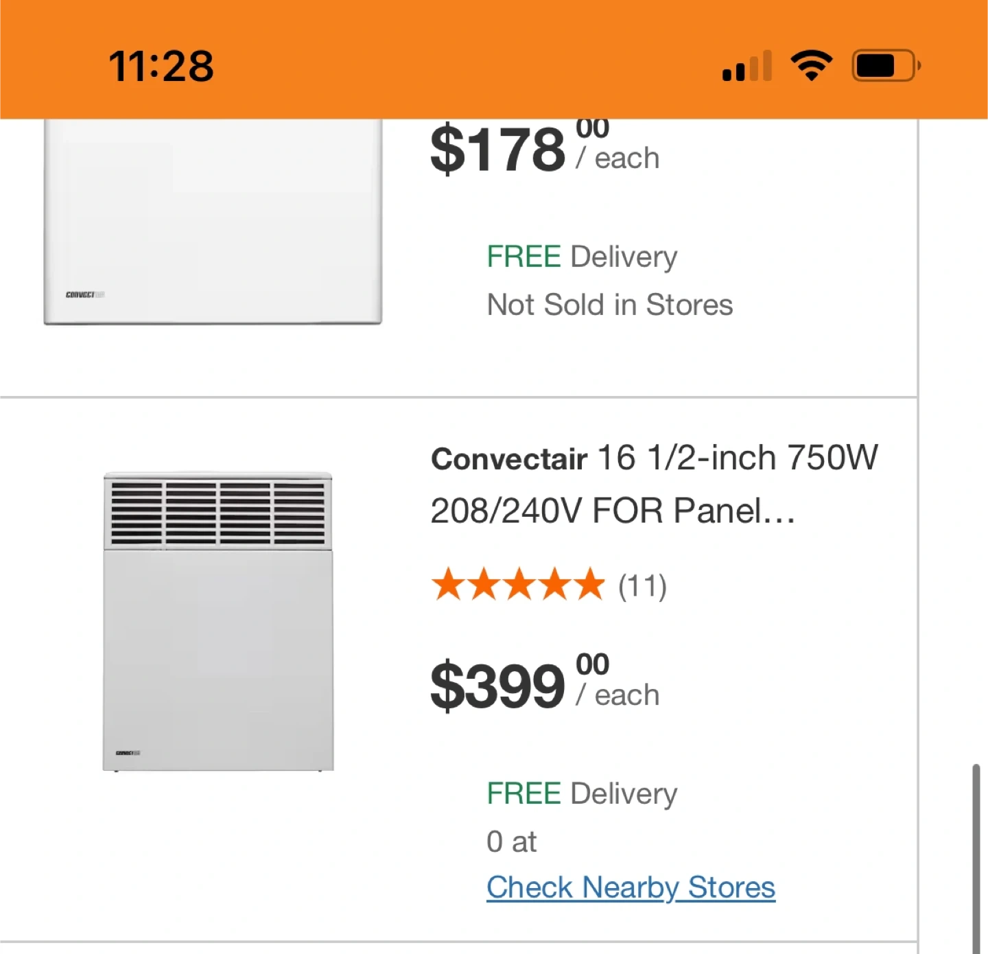 Buy & SellConvectair 16 1/2-inch wall mountable heaterConvectair 16 1/2-inch wall mountable heater$150Selling a Convectair 16 1/2-inch 750W panel heater. It's in great condition and ready to keep you warm this winter! Will consider best offerBrandConvectairWHERE TO MEETCheck LocationView MapSELLERverifiedFizaPort Union752 reviews0 chats·0 favorites·23 viewsSEND CHAT TO SELLERHi Fiza! I’m interested in your listing.Hi Fiza! I’m interested in your listing.Get the Karrot app to chatSign In to chat