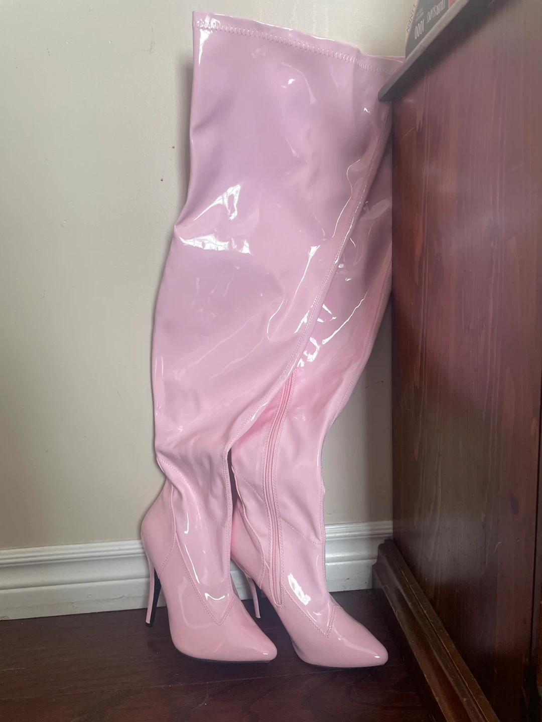 Pleasers Seduce 300WC . Given as a gift brand new . Don’t like it never worn Selling a pair of cute pink thigh-high heel boots! They are in good condition and ready for a new home. Perfect for adding a pop of colour to your wardrobe