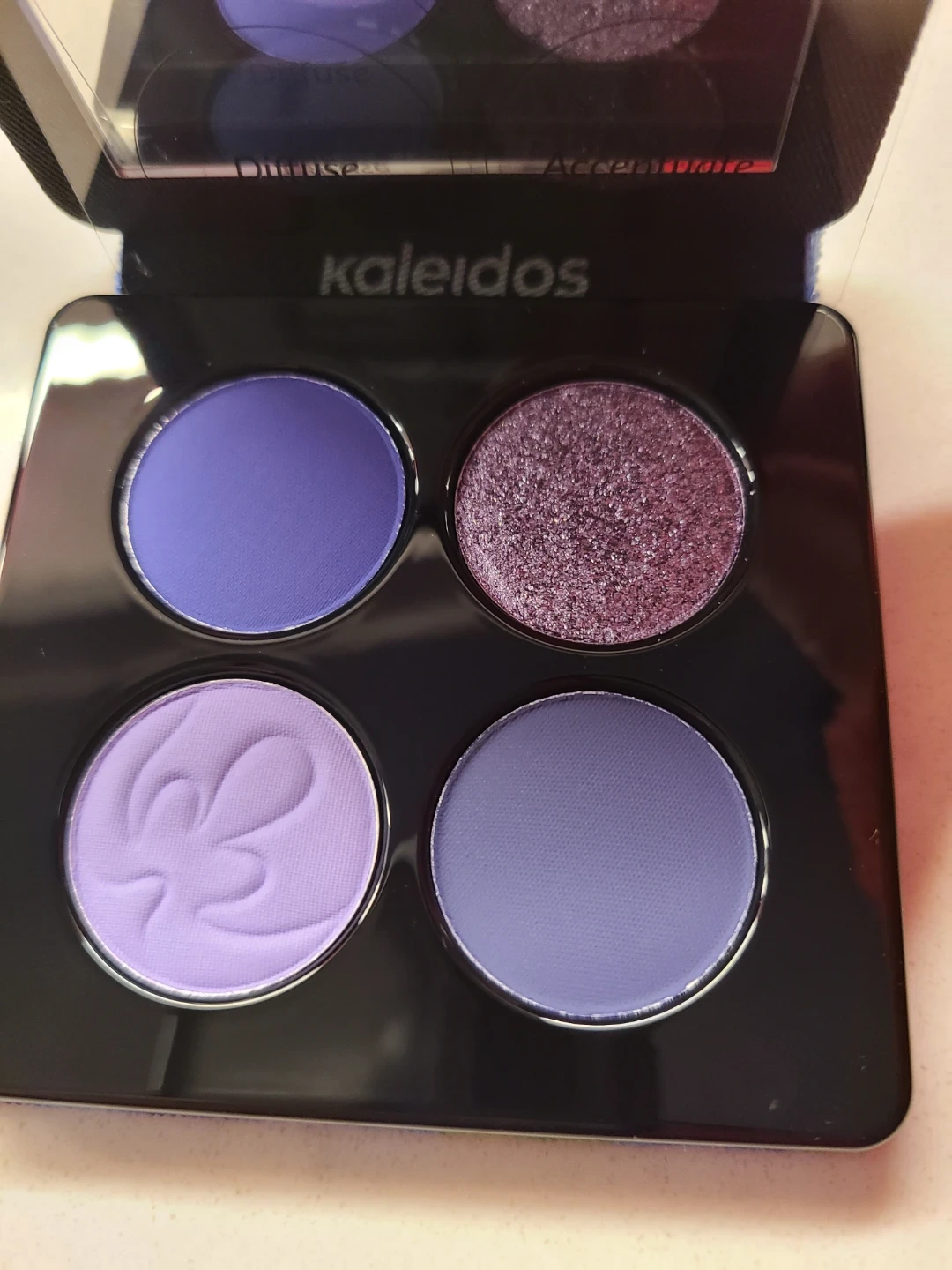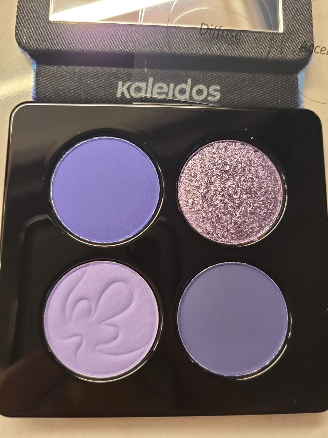 Kaleidos Quad Palette in Glowing Iris! This pressed pigment palette is cruelty-free and vegan. It features four beautiful shades.
