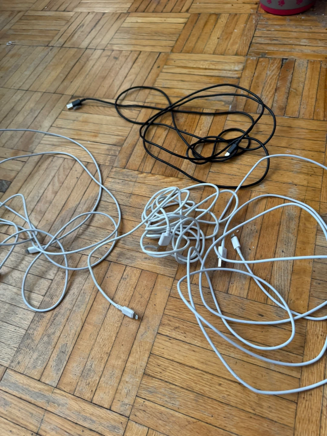lightening charge cords, a collection of assorted phone charging cables. Includes both black and white cables with various connector types. Perfect for stocking up on spares!