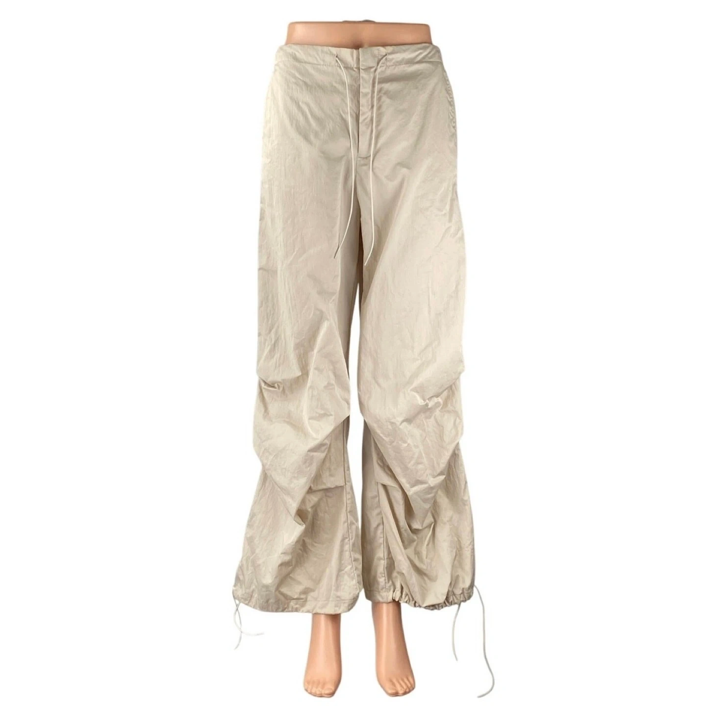 Zara Beige High Wa Baggy Windbreaker Parachute Trousers Pants