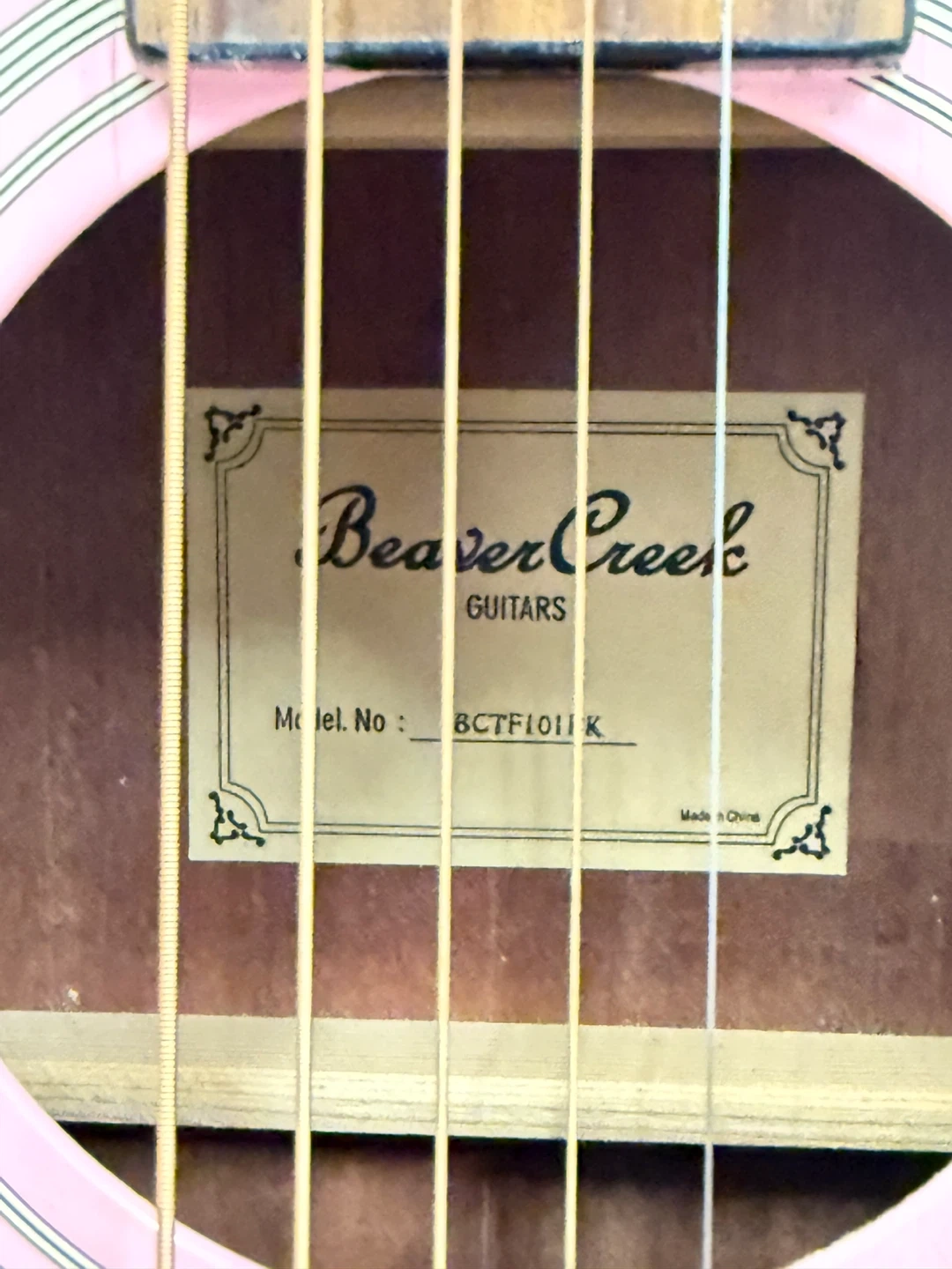 Selling a Beaver Creek guitar in a unique pink colour! The model number is BCTFI011K. It's in good condition and ready for someone to play and enjoy