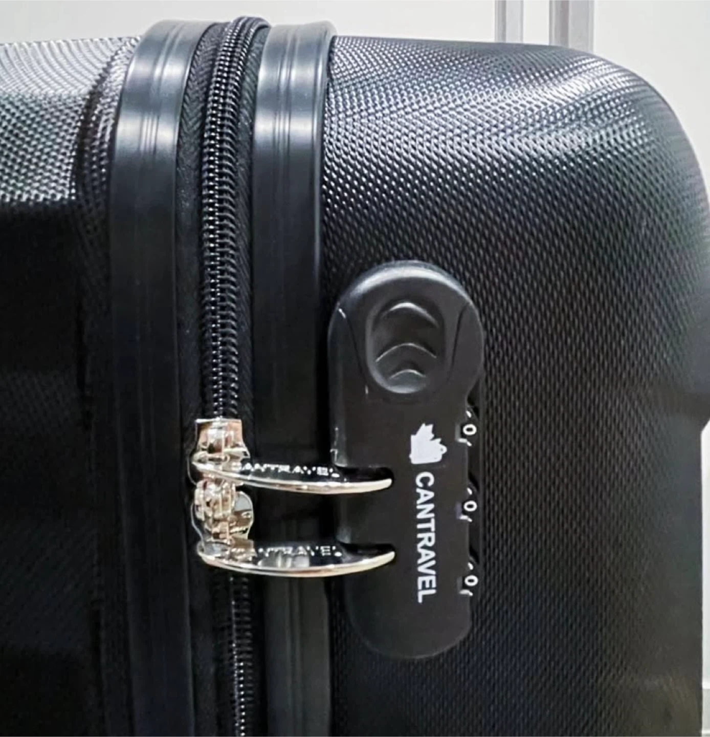 Selling a brand new luggage set in black! This set includes three different sizes, perfect for all your travel needs. It's in like-new condition and comes with the original box. Great for anyone planning a trip!