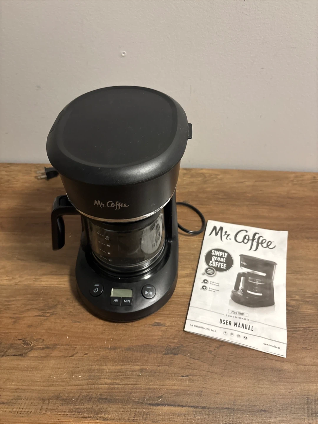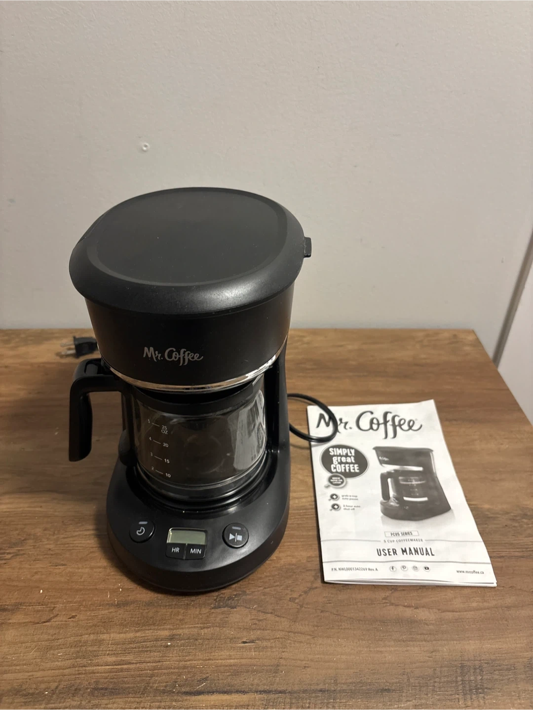 Selling a Mr. Coffee 5-cup coffeemaker. It's in great condition and comes with the user manual. Perfect for brewing a quick pot of coffee in the morning!