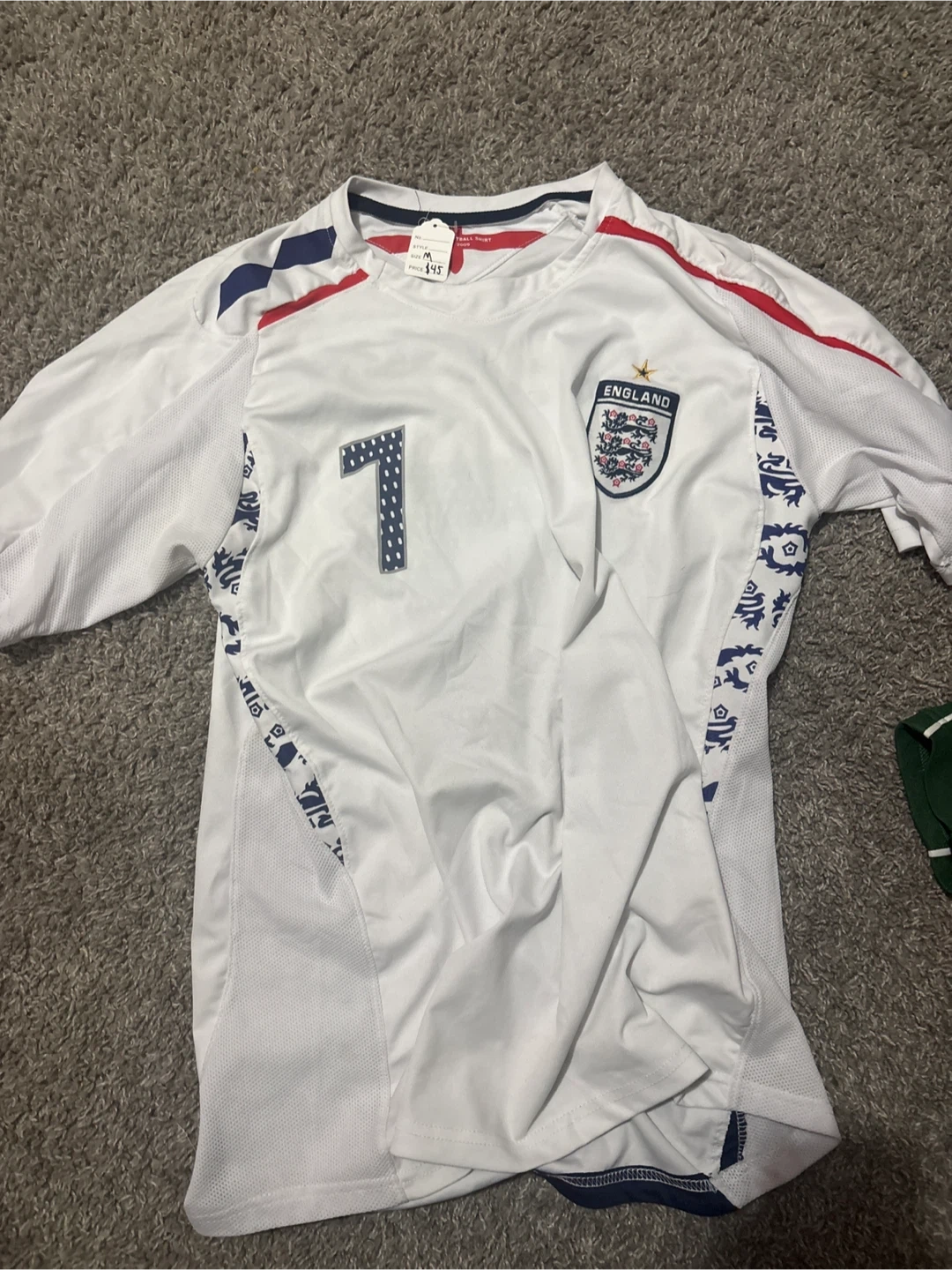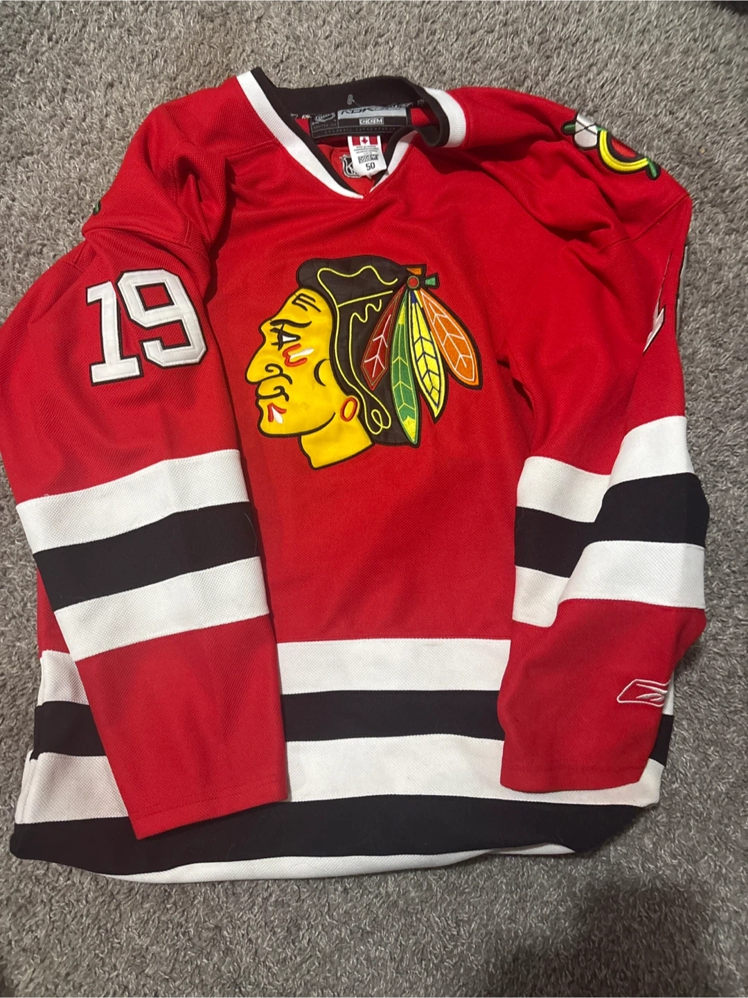 Selling a collection of assorted hockey and sports jerseys. Includes a Calgary Flames jersey, a Chicago Cubs jersey, an Indianapolis Colts jersey, an England jersey, and an Edmonton Elks jersey. All in good condition!