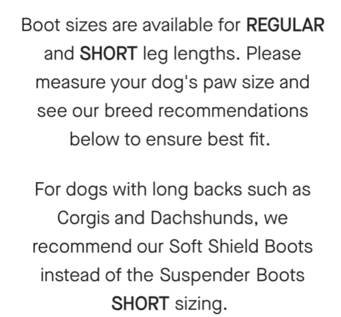 Sizes available for regular and short-legged dogs. Check the size chart to find the perfect fit for your pup!