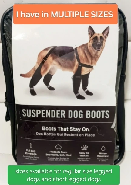 Keep your furry friend protected with these suspender dog boots! They're designed to stay on and provide full leg coverage.