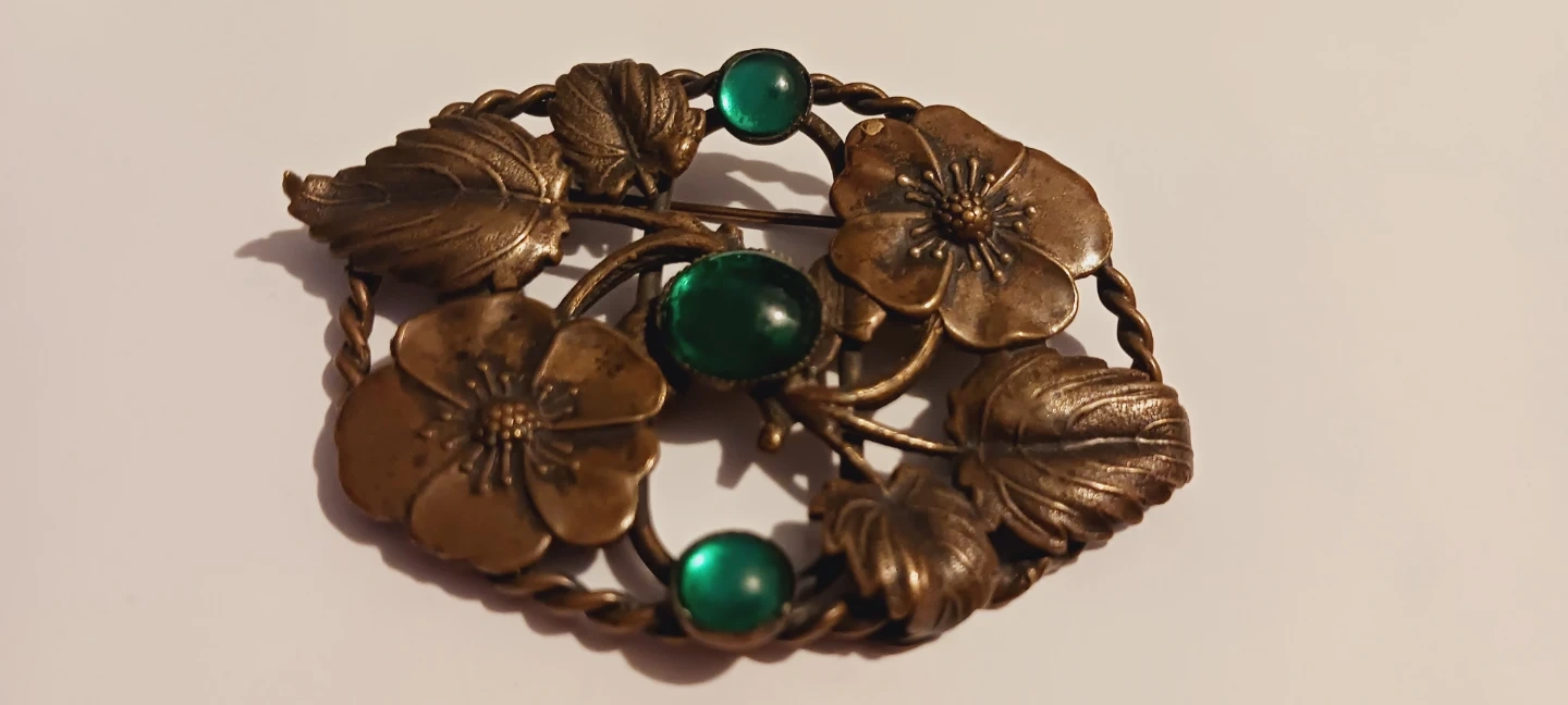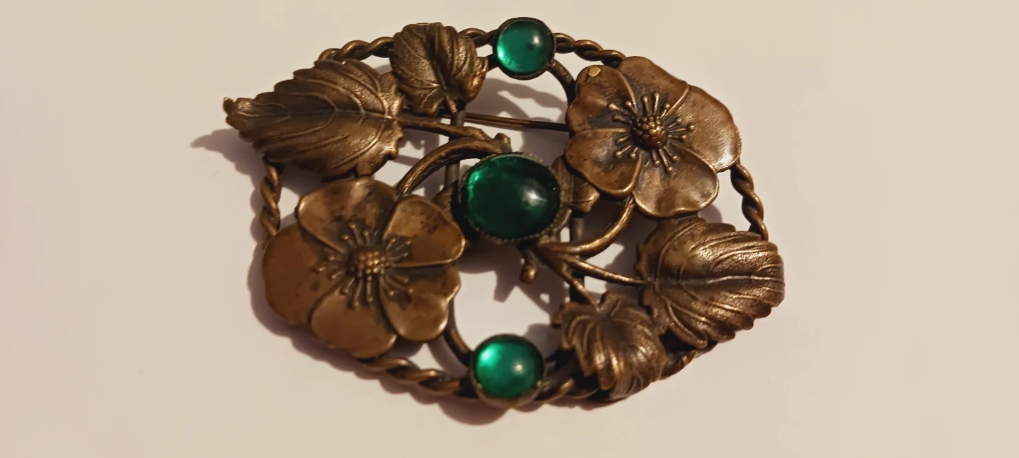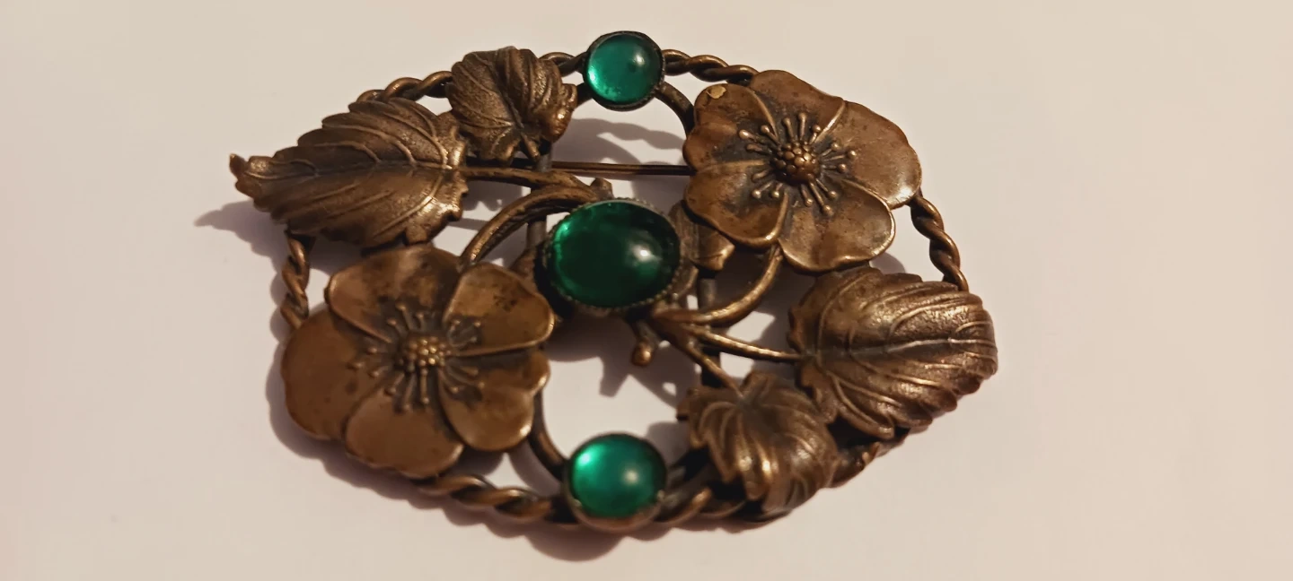 Selling a beautiful vintage brooch featuring a floral design with leaves and flowers. It has a lovely bronze tone and is accented with green stones. Perfect for adding a touch of vintage charm to any outfit! 2.5"×2". Excellent condition. ALL MY PRICES ARE NEGOTIABLE !!
