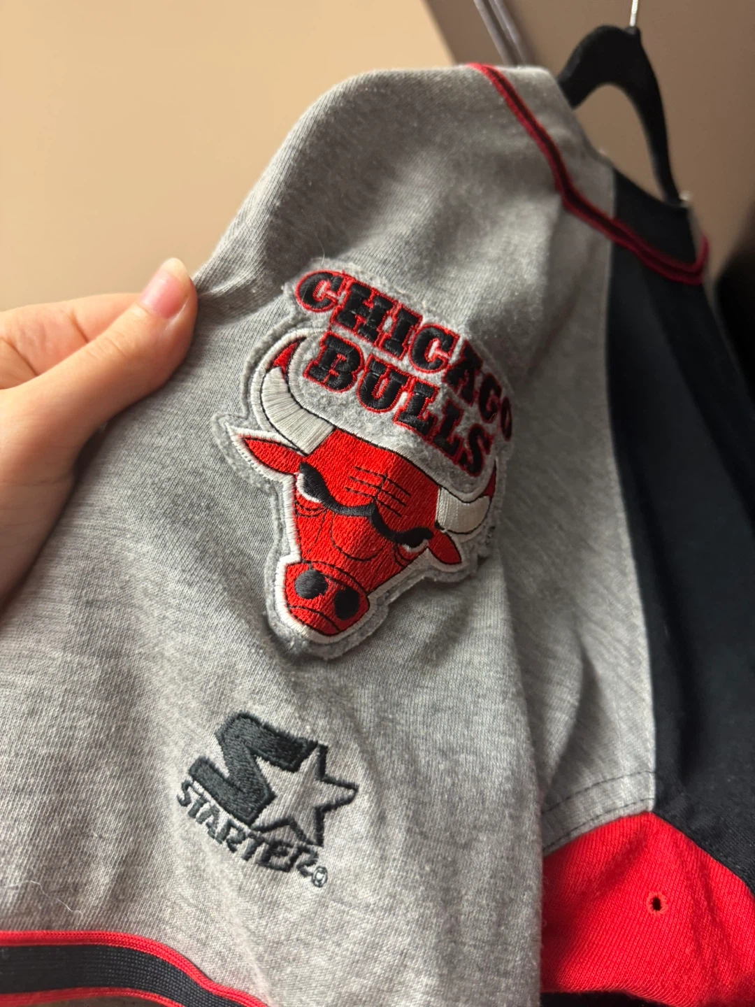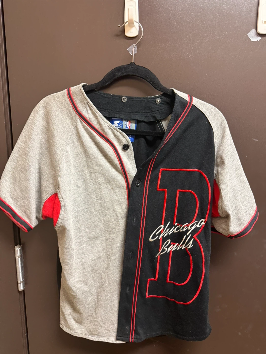 Selling a Chicago Bulls baseball jersey by Starter! It features the classic Bulls logo and design. Perfect for any basketball fan or vintage clothing enthusiast. It's in great condition and ready to wear!