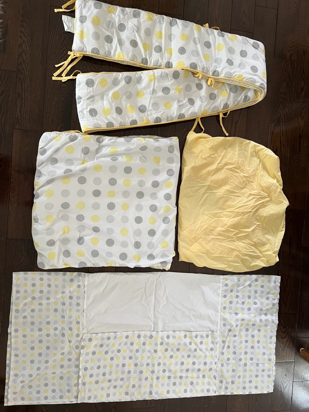 Listing includes a 4 Piece Bedding Crib Set from Bouclair.