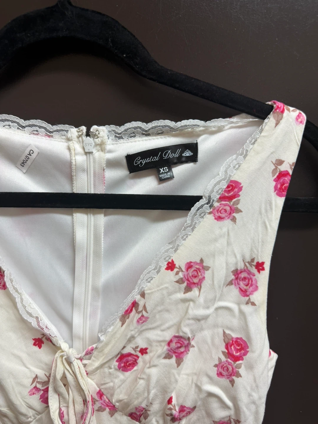 Selling a cute Crystal Doll dress in size XS! It features a lovely floral pattern with delicate lace trim. Perfect for a summer day or a special occasion!