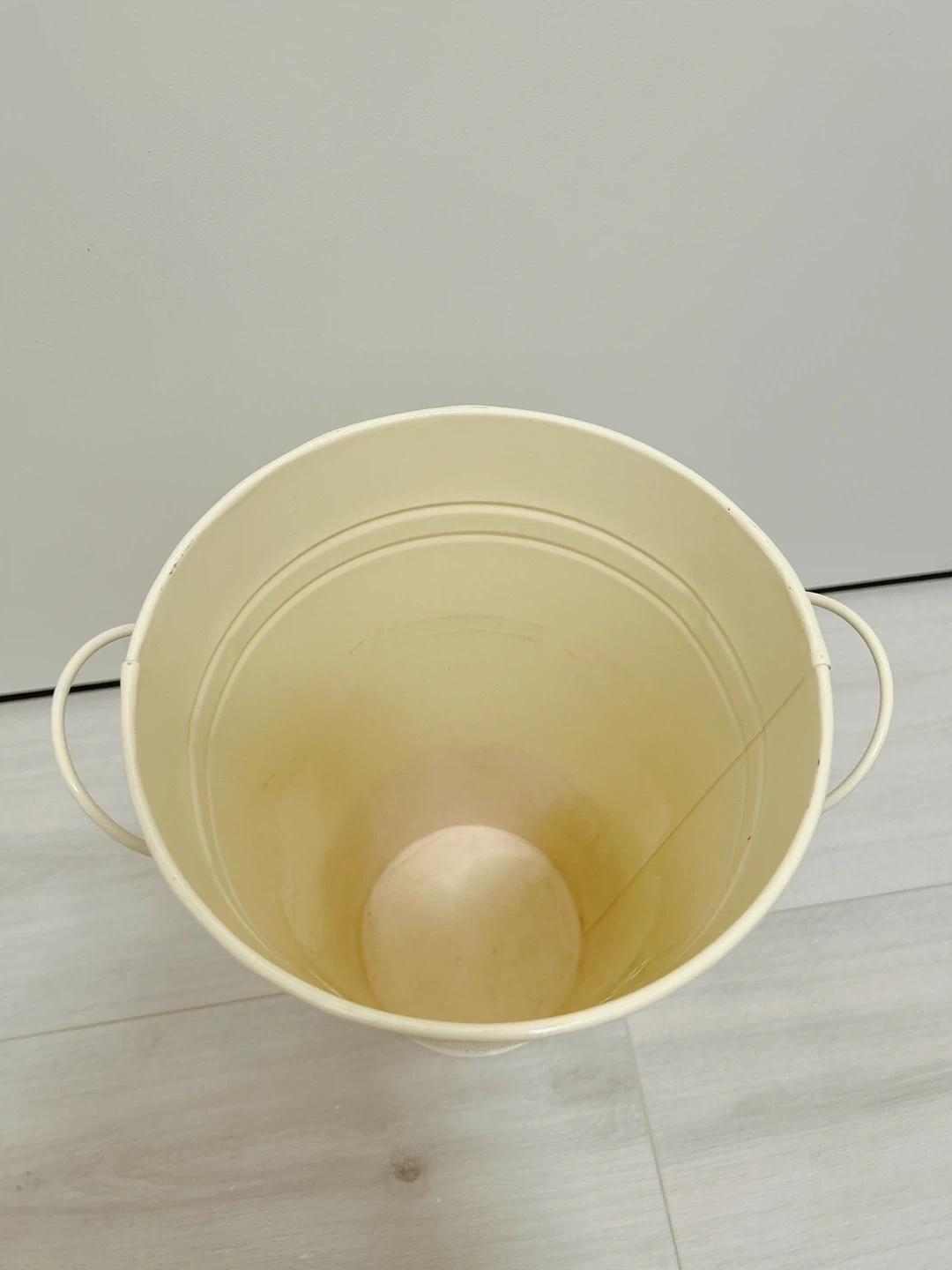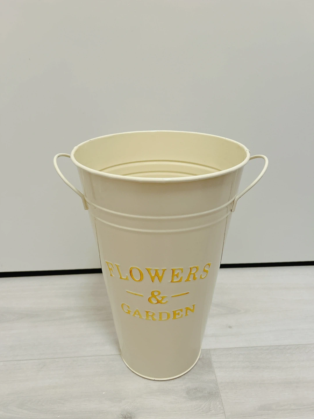 Selling a cute Flowers & Garden metal bucket! It's in great shape and perfect for displaying flowers or plants. The bucket has a cream colour with gold lettering.