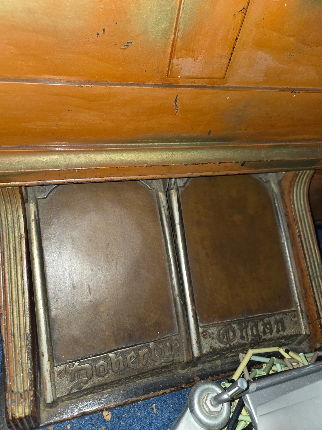 This solid wood instrument could also be repurposed into a unique and beautiful desk or.....?