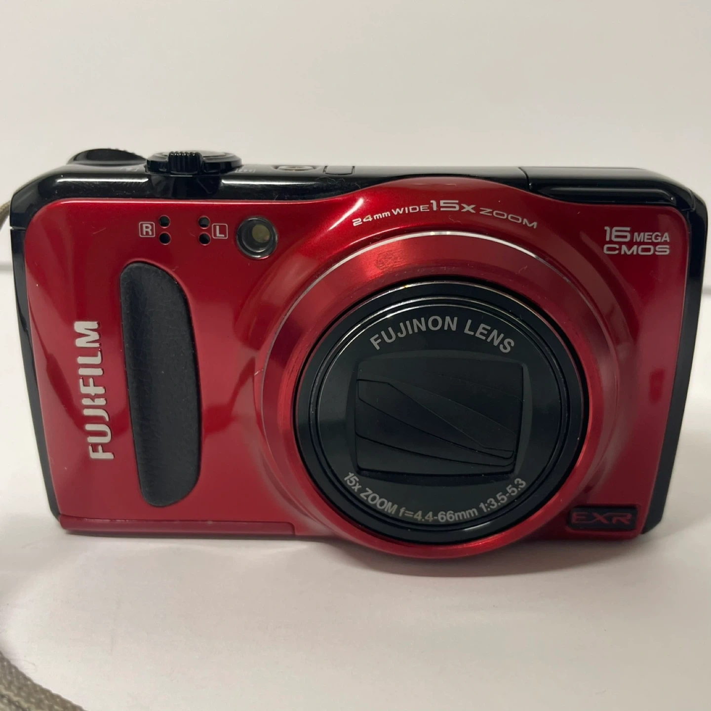Selling a Fujifilm FinePix F500EXR digital camera in red! It features a Fujinon lens with 15x zoom and captures 16-megapixel images. Great for everyday photos and travel
