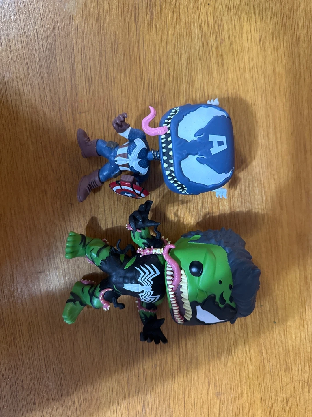 Buy & SellFunko Pop Venomized Captain America & HulkFunko Pop Venomized Captain America & Hulk$10Selling two Funko Pop figures: Venomized Captain America and Venomized Hulk! They're in great condition and ready to join your collectionConditionLike newWHERE TO MEETShorehavenView MapSELLERverifiedBrendaClason Point1719 reviews0 chats·1 favorites·7 viewsSEND CHAT TO SELLERHi Brenda! I’m interested in your listing.Hi Brenda! I’m interested in your listing.Get the Karrot app to chatSign In to chat