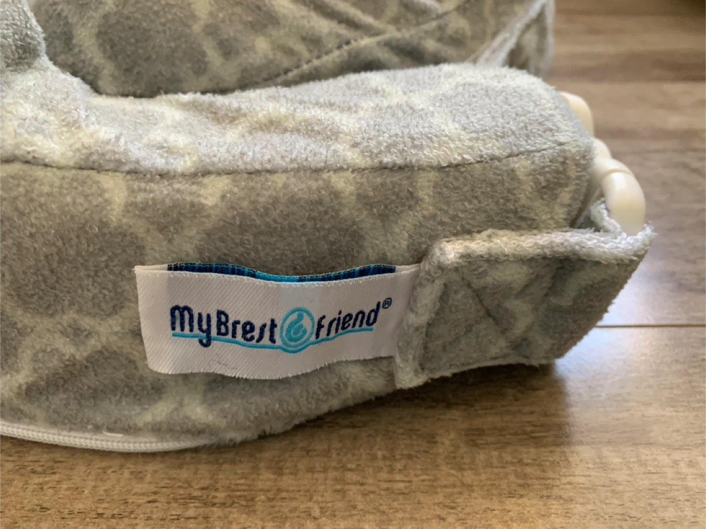 Selling a My Brest Friend nursing pillow in great condition! It's got a cute grey and white pattern. Perfect for supporting you and your little one during feeding time
