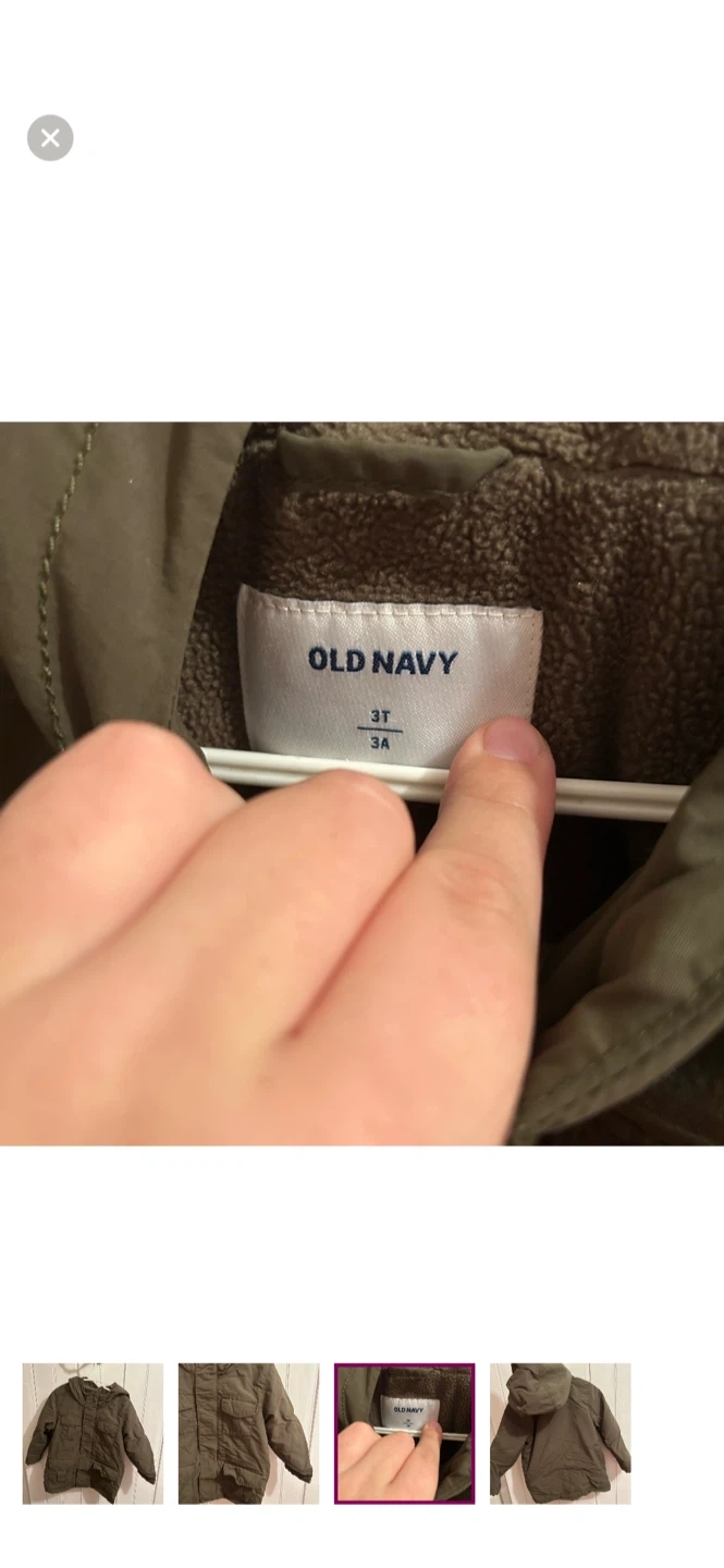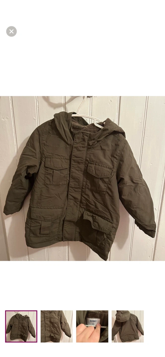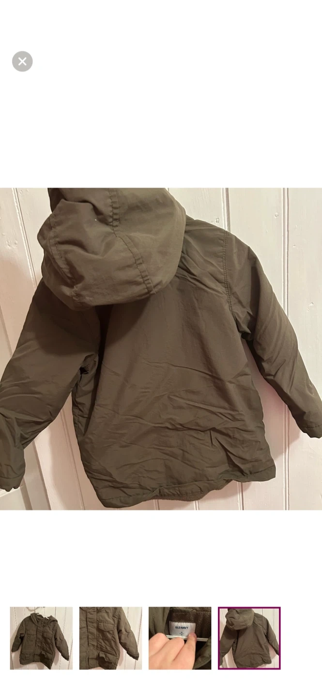 Old navy brand. Fleece lined zip up fall jacket. Dark olive green. Size 3t. Brand new condition